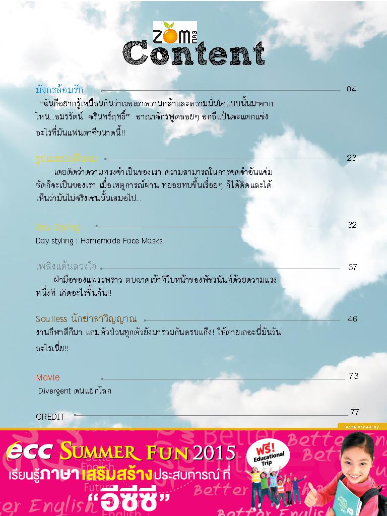 ZOMMag นิตยสารนิยายออนไลน์ยุคใหม่หลากหลายรสชาติมีตั้งแต่รสหวานฉ่ำของนิยายรักซึ้งกินใจ รสเปรี้ยวอมหวานของนิยายรักกุ๊กกิ๊ก และรสเปรี้ยวซ่าชวนเปรี๊ยวกรามของนิยายสืบสวน ไม่ว่าจะรสชาติไหน ผลไม้ไรเหลี่ยมลูกนี้ก็พร้อมเสริฟให้ฟินทุกความอร่อยได้แล้ววันนี้ !!Slogan - ZOMMag ผลไม้ไร้เหลี่ยม!! : peoplemedia