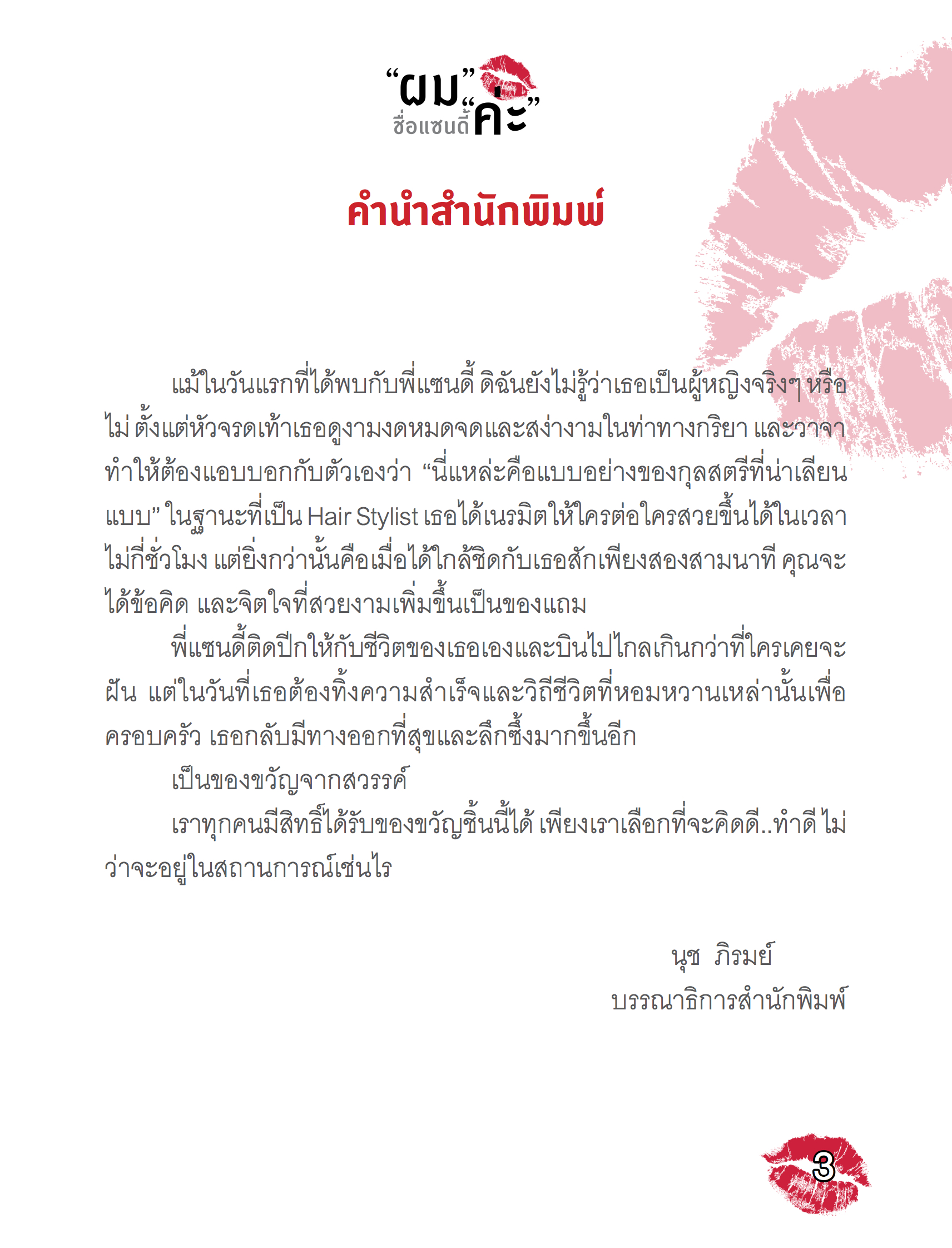 จากเด็กชายที่เป็นนักกีฬาว่ายน้ำโรงเรียน นักรักบี้ของคณะ...สจ๊วตการบินไทย จนกระทั่งต้องมาเป็น Hair Stylist ประจำตัวดารา Hollywood วิถีชีวิตที่ผกผันทำให้ เขามาเป็น “แซนดี้” ในทุกวันนี้ ฺ......แซนดี้ ที่มีความสุขเพราะการเดินทางที่ทำให้ “เขา” ค้นพบตัว “เธอ” เอง...