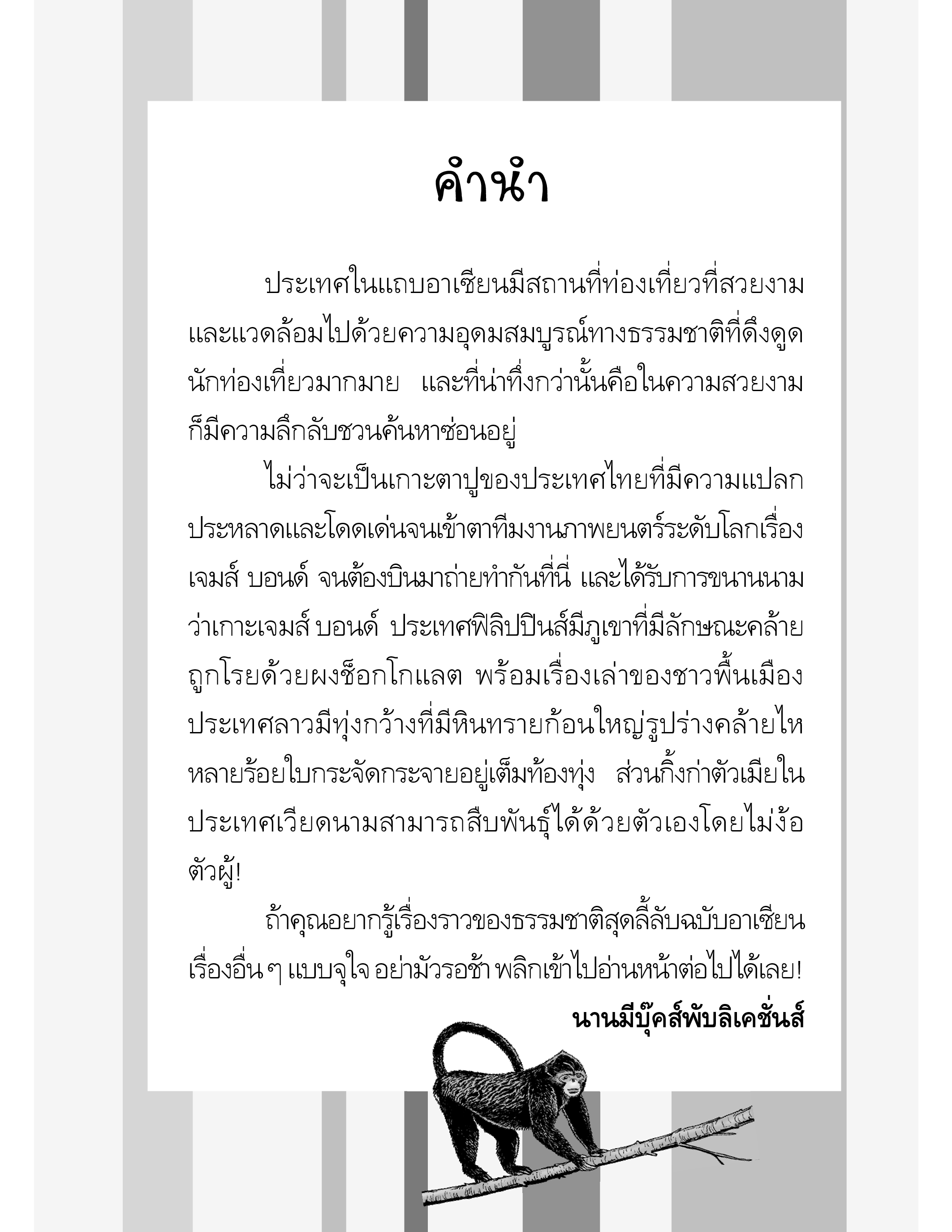ธรรมชาติสุดลี้ลับฉบับอาเซียน ถ้าอยากรู้ว่า - ภูเขาช็อกโกแลตหน้าตาเป็นอย่างไร - ตัวเงินตัวทองที่ใหญ่ที่สุดในโลกมีลักษณะอย่างไร - ทำไมลิงหน้าแหงนถึงได้ชื่อว่าเป็นลิงที่อาภัพที่สุดในโลก - ดอกไม้ที่มีกลิ่นเหม็นที่สุดในโลกคือดอกอะไร หาคำตอบได้ในหนังสือเล่มนี้: