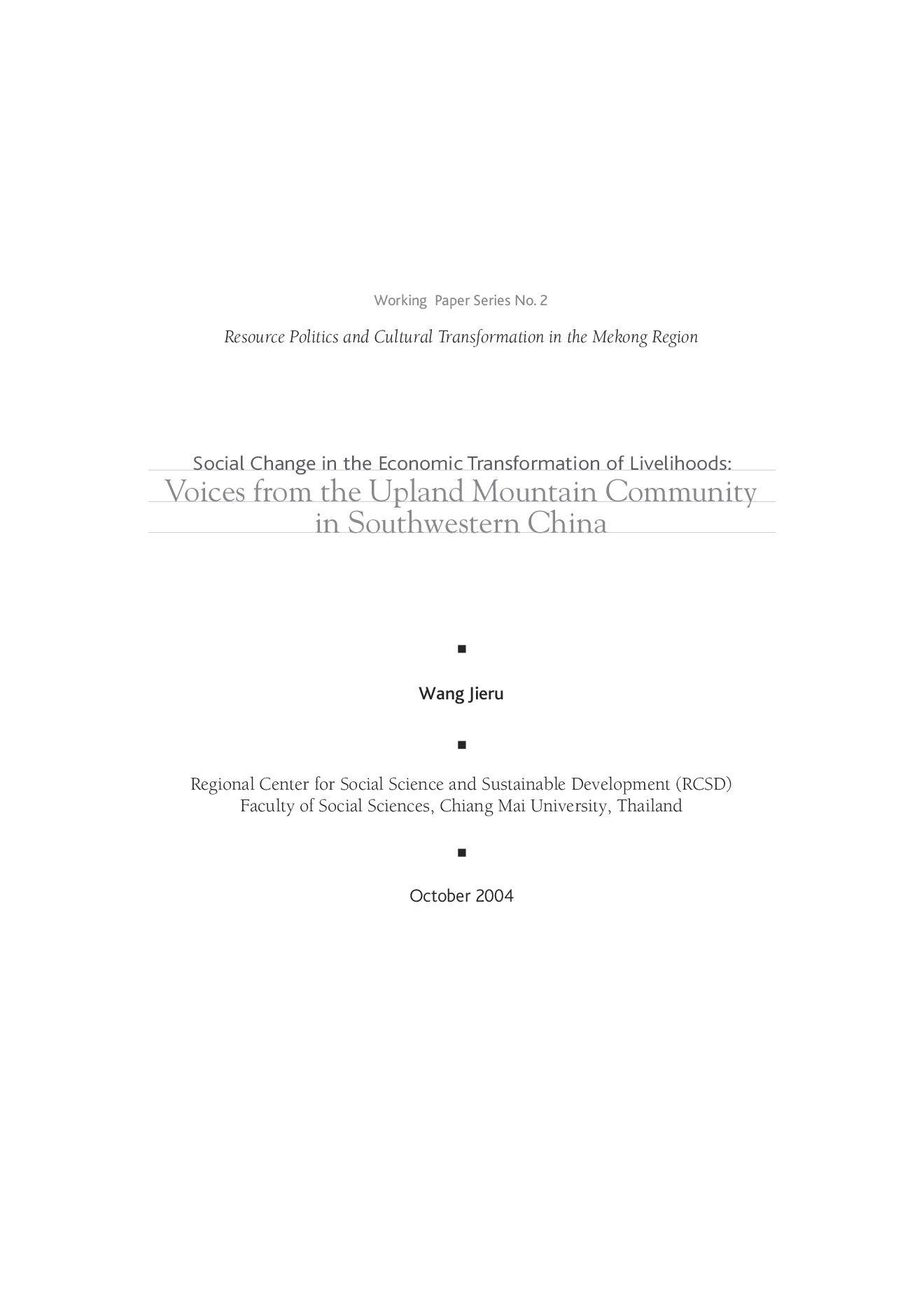 Social Change in the Economic Transformation of Livelihoods: Voices From the Upland Mountain Community in Southwestern China