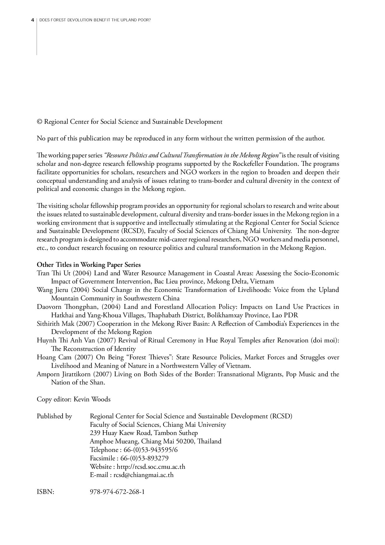 To Xuan Phuc was formerly a junior researcher at the Bonn International Graduate School in Development Research at ZEF and Junior Research Group on Post-socialist Land Relations at Humboldt University in Berlin. He received his doctoral degree at Humboldt University in Berlin in 2007. He has done extensive research on the politics of forest management in Vietnam, with particular attention to the dynamics of access and control over forestland and forest resources. Much of his current research focuses on the impacts of forest devolution policy and market forces on local livelihoods in the uplands. Together with his colleagues, he is now working on a book on Post-socialist landscapes. Currently, Dr. To is a post- doctoral fellow at the Department of Anthropology, University of Toronto, Canada.