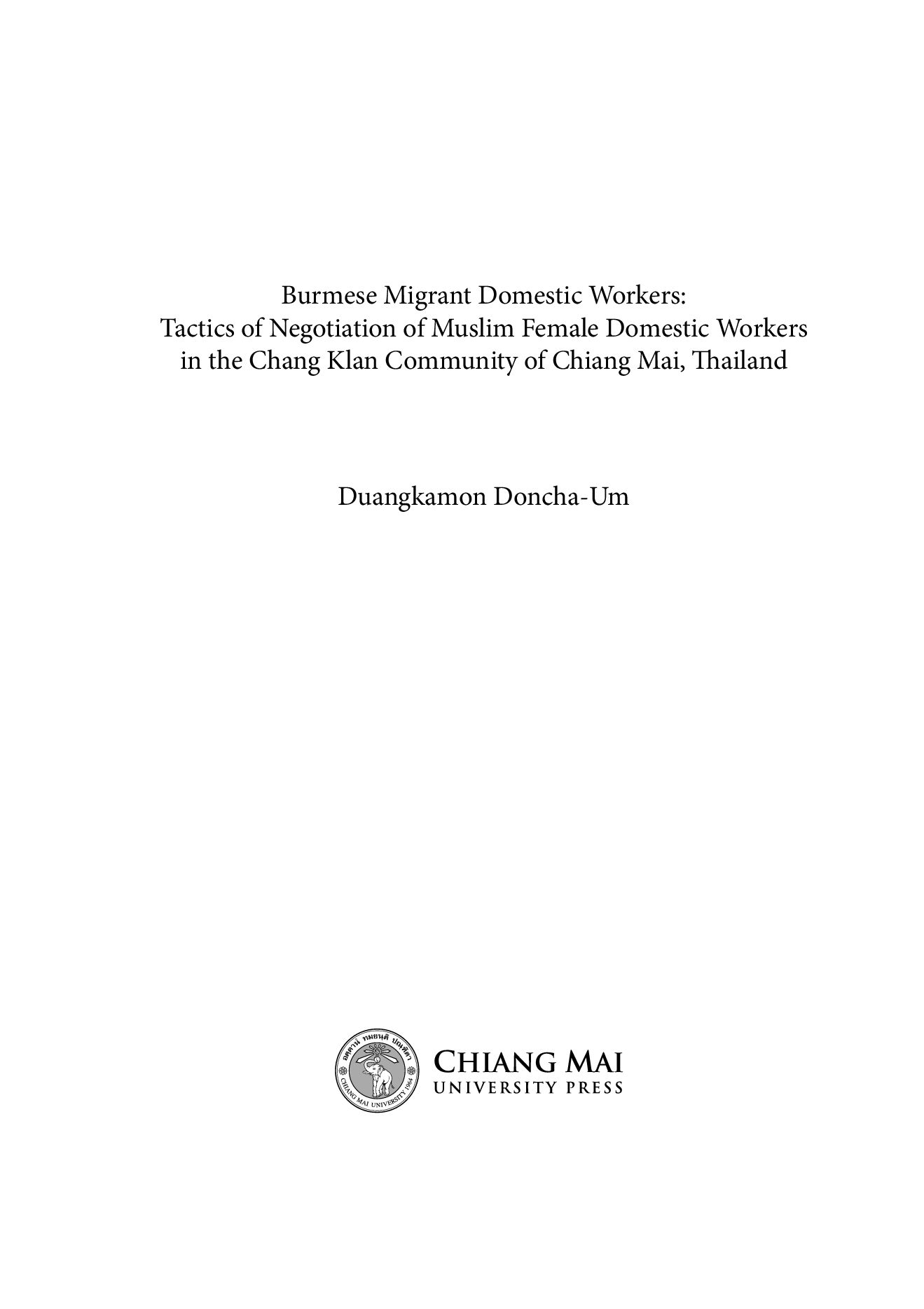 Burmese Muslim female migrant domestic workers live their lives in a host society— the predominantly Muslim Chang Klan neighborhood of Chiang Mai city in northern Thailand. These women seek to transform their vulnerable, marginalized identities as Burmese (race), Muslims (religion), migrants (migration status), domestic workers (class), and women (gender) into social capital via various tactics of negotiation in the community in which they have resettled.
