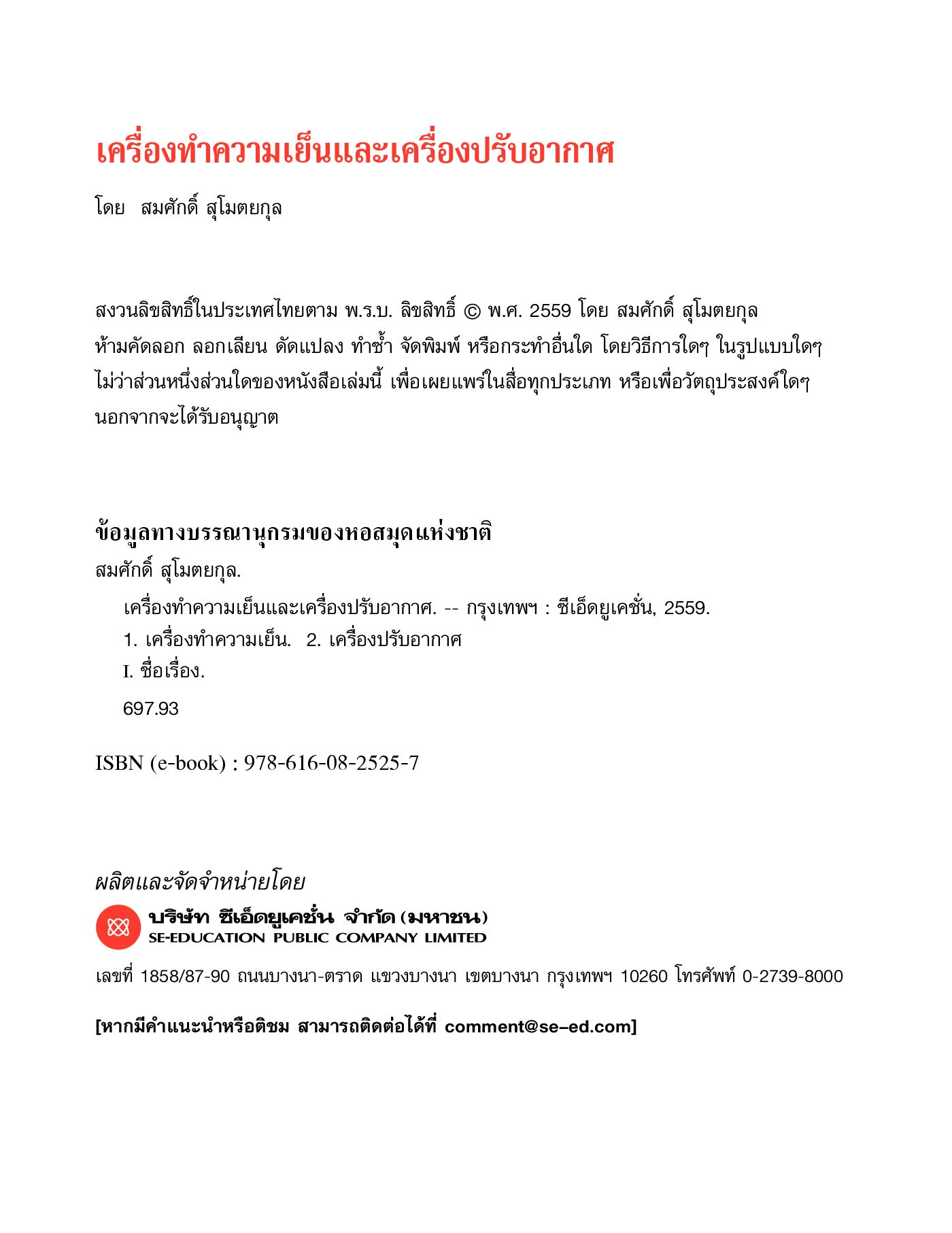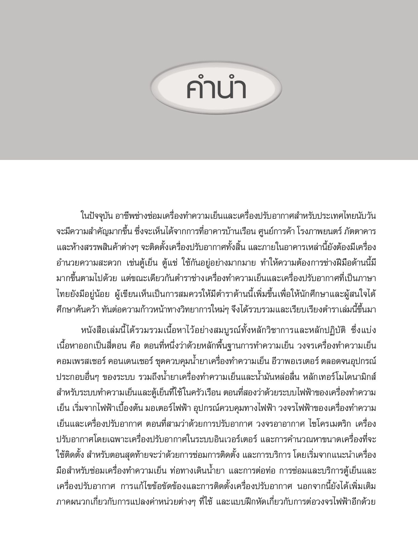 หนังสือเล่มนี้ได้รวบรวมเนื้อหาเกี่ยวกับเครื่องทำความเย็นและเครื่องปรับอากาศไว้อย่างสมบูรณ์ ทั้งหลักวิชาการและหลักปฏิบัติ