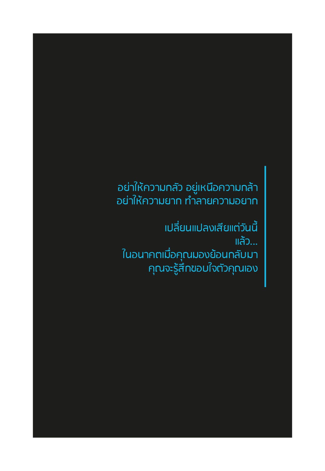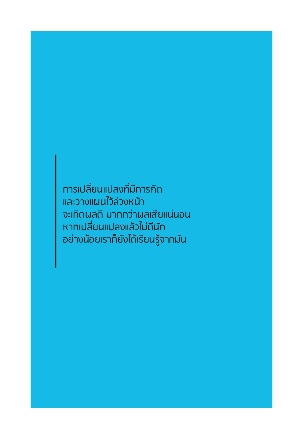 เป็นเพียงจุดเริ่มต้นที่จะสร้างการตระหนักรู้ และมีตัวอย่างให้เห็นในหลายแง่มุม ให้ผู้อ่านได้เห็นถึงผลกระทบของการเปลี่ยนแปลง รวมไปถึงวิธีการรับมือกับการเปลี่ยนแปลง ซึ่งเป็นแนวทางที่ได้พิสูจน์แล้วว่าใช้ได้จริง เส้นทางของคนทำงานยุคนี้ไม่ได้ง่าย หรือมั่นคงเหมือนเมื่อก่อนอีกต่อไปแล้ว หลายๆ อาชีพก็เริ่มหายไป ดังนั้น ถ้าเราไม่อยากตกเป็นเหยื่อของการเปลี่ยนแปลง เราก็ต้องเริ่มเปลี่ยนแปลงตัวเองตั้งแต่วินาทีนี้ "เพราะผู้ที่อยู่รอดและสำเร็จ คือ ผู้ที่เปลี่ยนแปลงตัวเองก่อนการเปลี่ยนแปลงจะมาถึง"