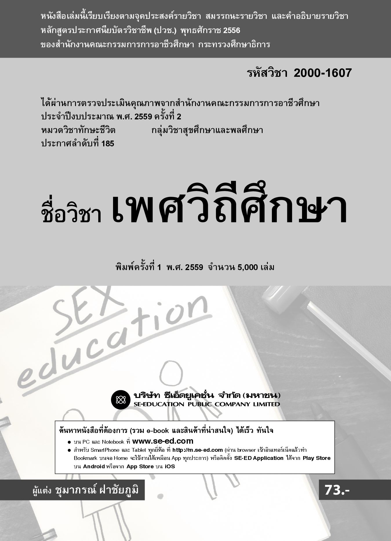 "เพศวิถีศึกษา รหัสวิชา 2000-1607" เป็นวิชาที่สำคัญสำหรับนักเรียนที่อยู่ในระดับ ปวช. หรือ วัยรุ่น ตรงตามหลักสูตรประกาศนียบัตร พุทธศักราช 2556 ของสำนักงานคณะกรรมการการอาชีวศึกษา กระทรวงศึกษาธิการ เนื้อหาในเล่มนักเรียนจะได้เรียนรู้เกี่ยวกับสรีระร่างกาย การรู้จักปรับตัวในการใช้ชีวิตในชีวิตจริง การมีทักษะในการปฏิเสธ รวมทั้งการวางตัวให้ถูกต้องและเหมาะสมตามวัย ซึ่งเป็นสิ่งที่นักเรียนควรได้รับการศึกษาเพิ่มความรู้ หวังเป็นอย่างยิ่งว่า ความรู้จากหนังสือเพศวิถีศึกษาเล่มนี้ จะสามารถพัฒนาความรู้และความคิดให้แก่นักเรียน เพื่อนำไปปรับใช้ในชีวิตประจำวันของนักเรียนได้เป็นอย่างดี