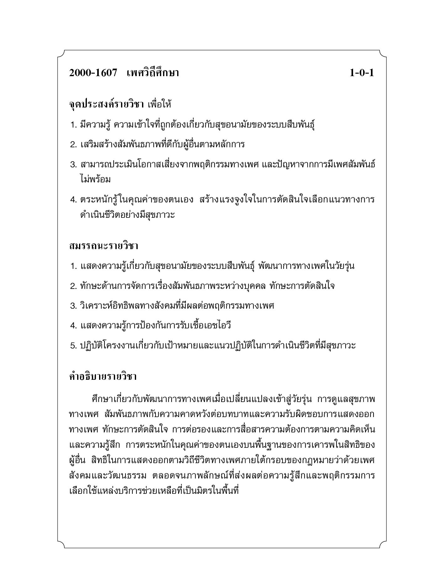 เพศวิถีศึกษา (รหัสวิชา 2000-1607)