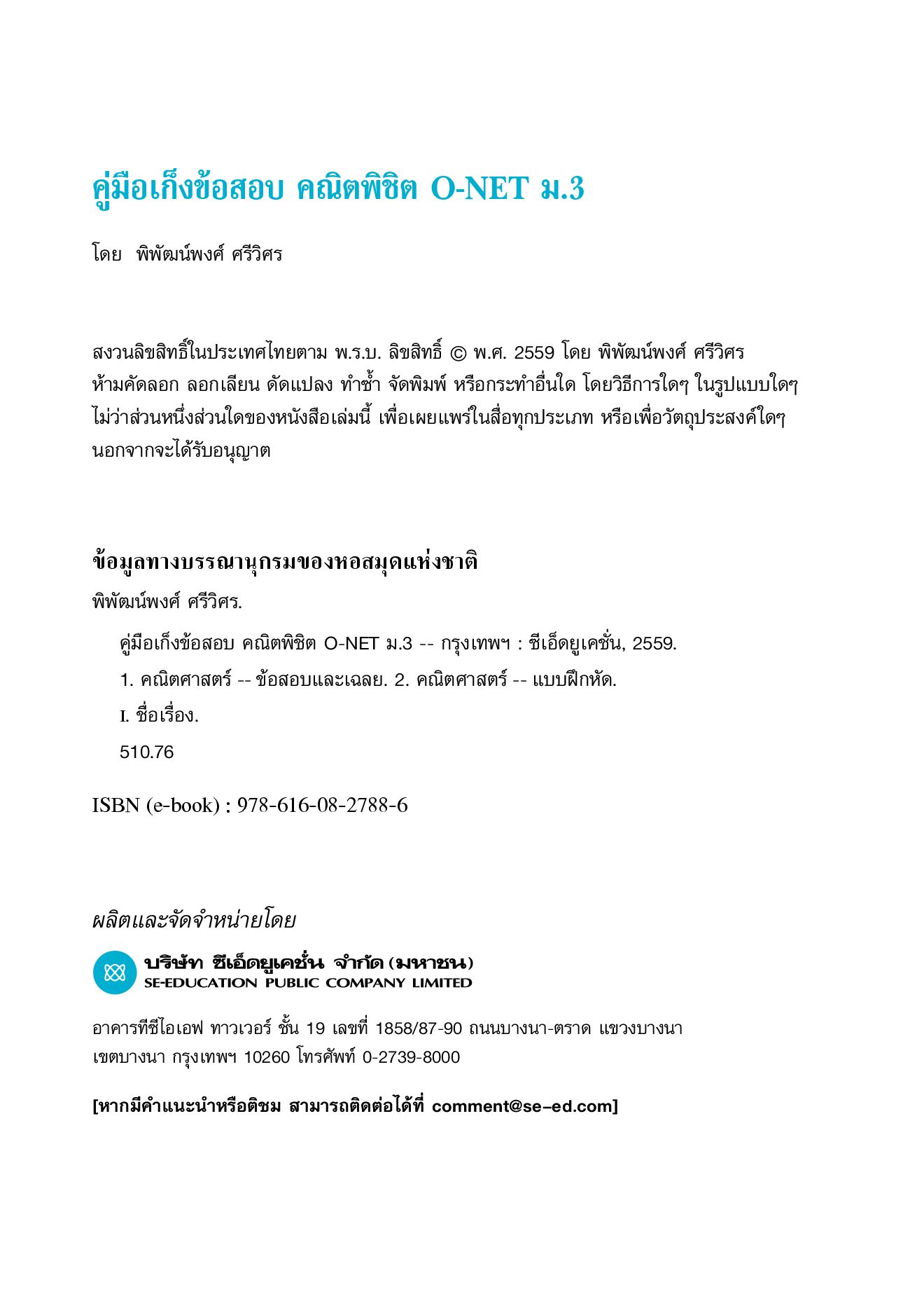 - เก็งข้อสอบ คณิตศาสตร์ O-NET ม.3