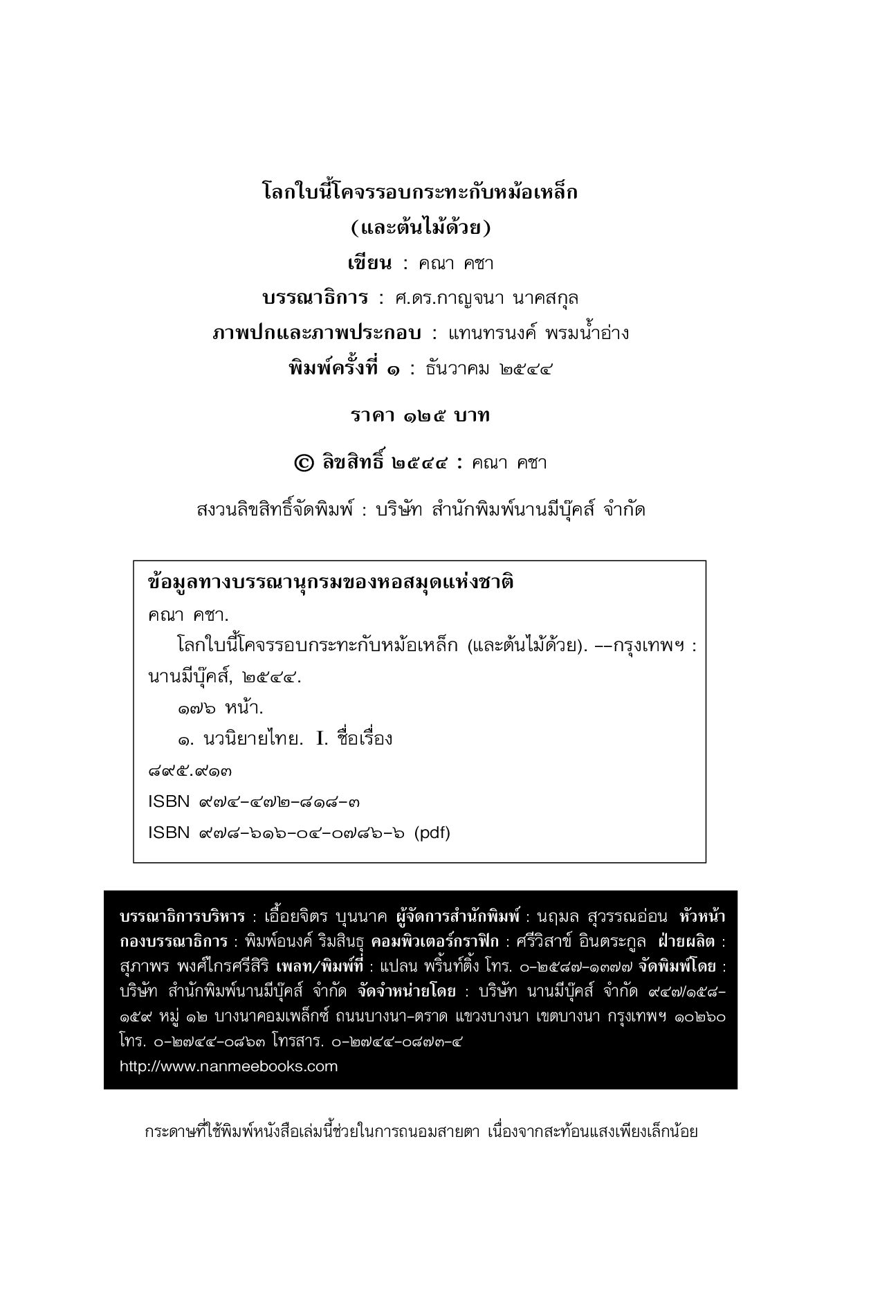เรื่องราวในเมืองระเบียนที่มีแต่ตึกทรงสี่เหลี่ยม ไม่มีความร่มรื่นของต้นไม้ แต่แล้วก็มีเหตุการณ์ที่ทำให้ เมืองนี้เกิดการเปลี่ยนแปลง ผู้อ่านจะต้องอมยิ้มอย่างมีความสุข กับการโคจรมาประสมกันอย่างกลมกลืน ระหว่างกระทะ หม้อเหล็ก ต้นไม้ และผู้คนบนโลกใบนี้
