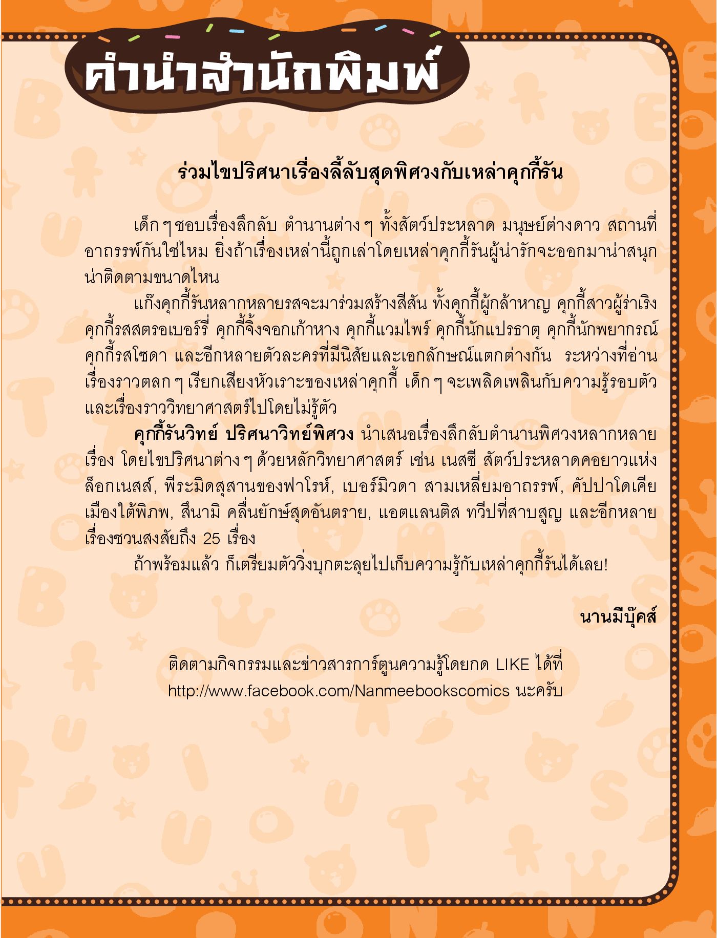 เหล่าตัวละครคุกกี้รันที่เด็กๆชื่นชอบจะมาเล่าเรื่องวิทยาศาสตร์ลึกลับชวนพิศวง 25 เรื่อง เช่น ตำนาน สถานที่ลึกลับ สิ่งก่อสร้างในอดีต สัตว์ประหลาดต่างๆ ในรูปแบบที่สนุกสนานเข้าใจง่ายพร้อมขำกลิ้งไปกับเหล่าคุกกี้หลากรสที่มีคาแร็กเตอร์แตกต่างกัน