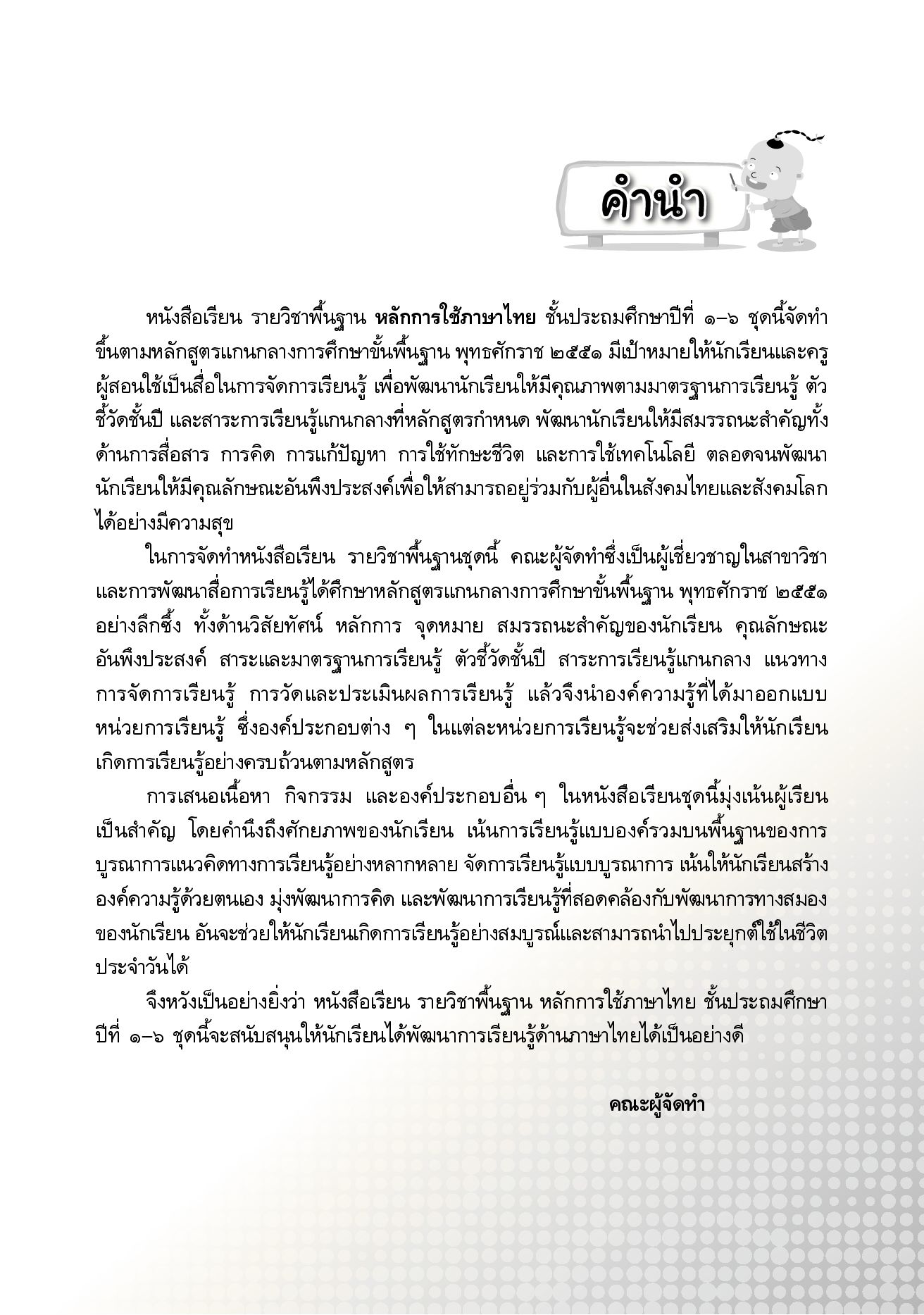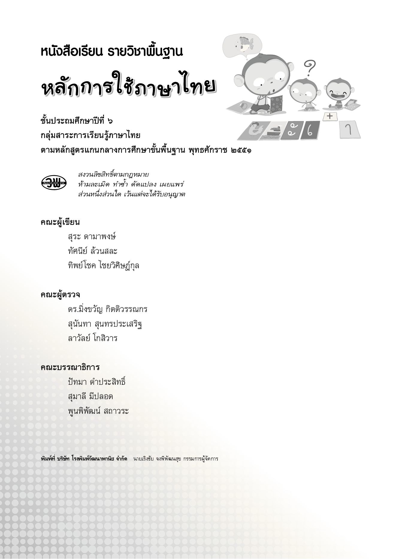 หนังสือเรียน รายวิชาพื้นฐานภาษาไทยชั้นประถมศึกษาปีที่ 6