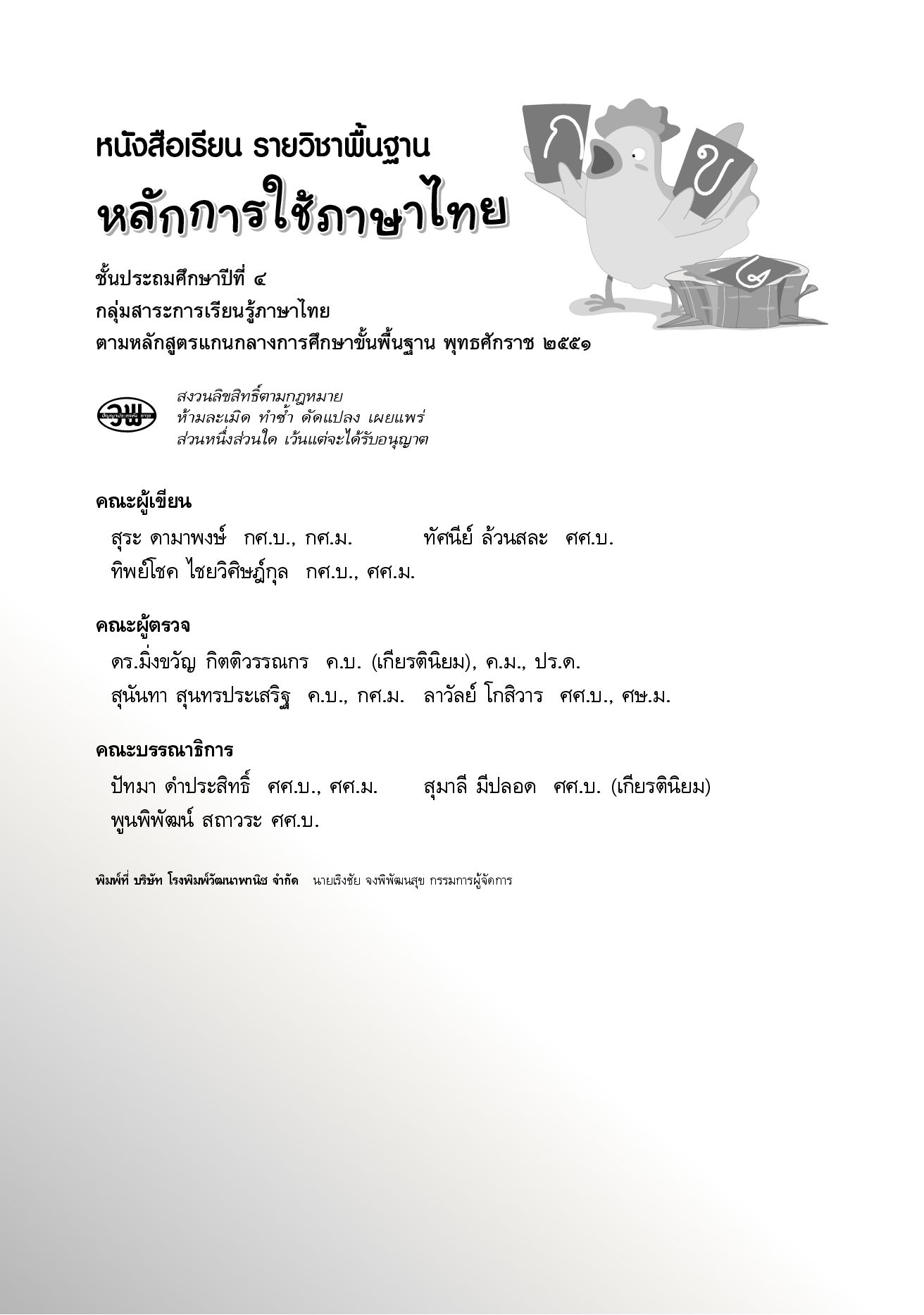 หนังสือเรียน รายวิชาพื้นฐานภาษาไทยชั้นประถมศึกษาปีที่ 4