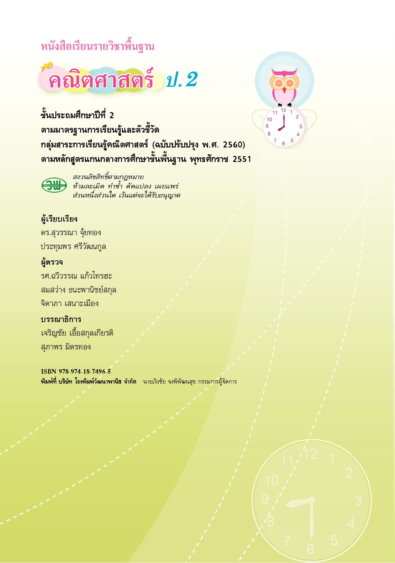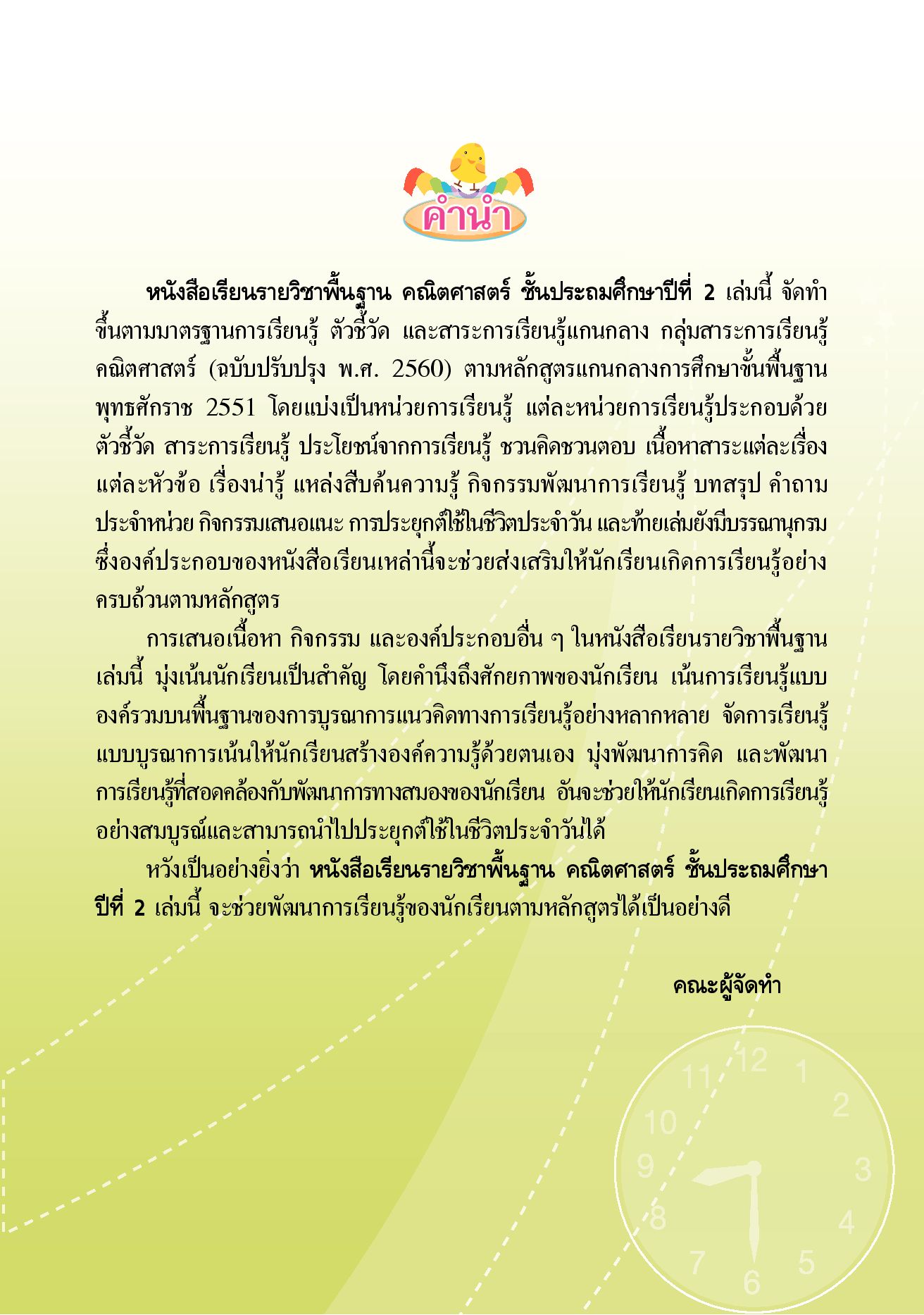 หนังสือเรียน รายวิชาพื้นฐานคณิตศาสตร์ชั้นประถมศึกษาปีที่ 2