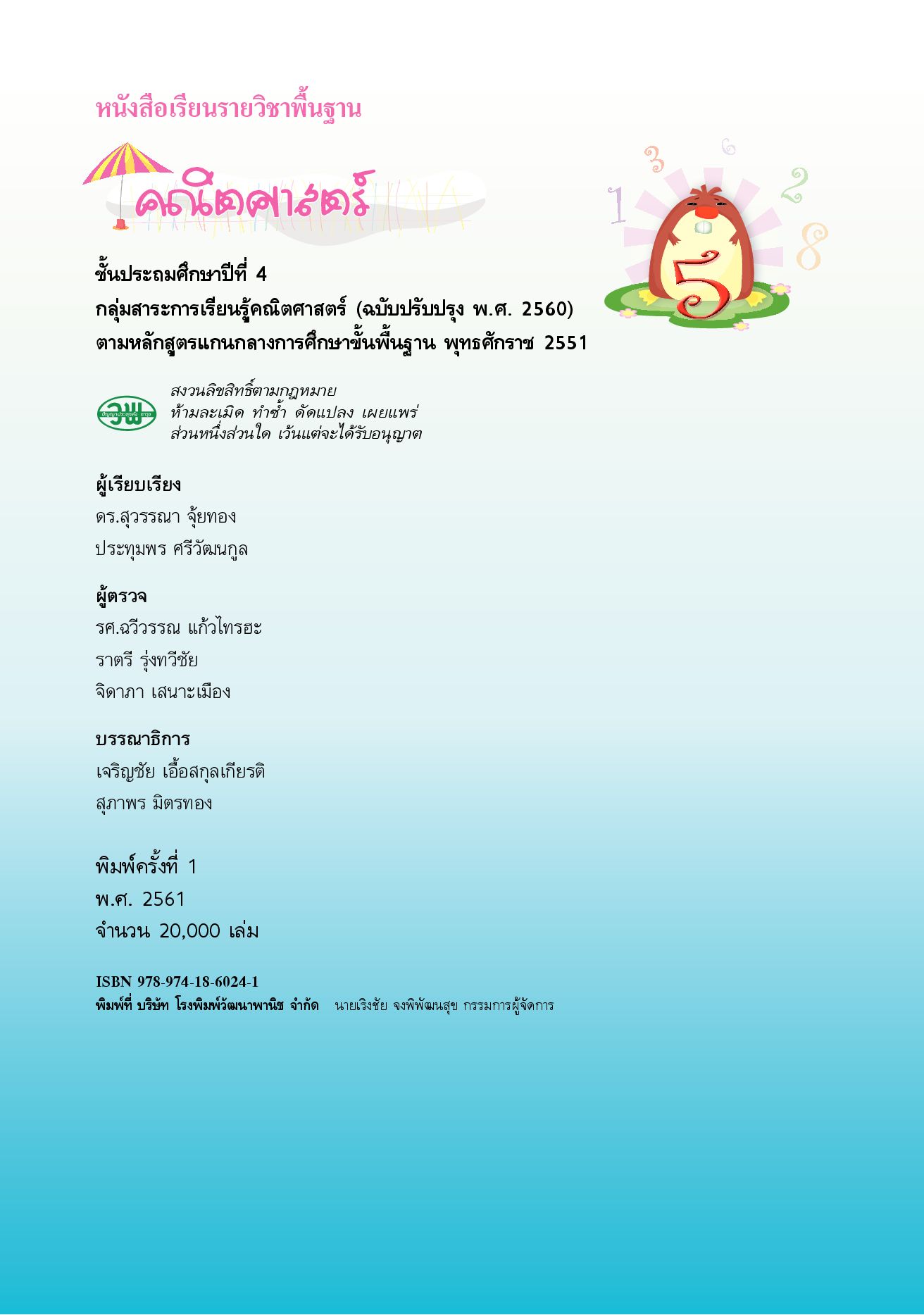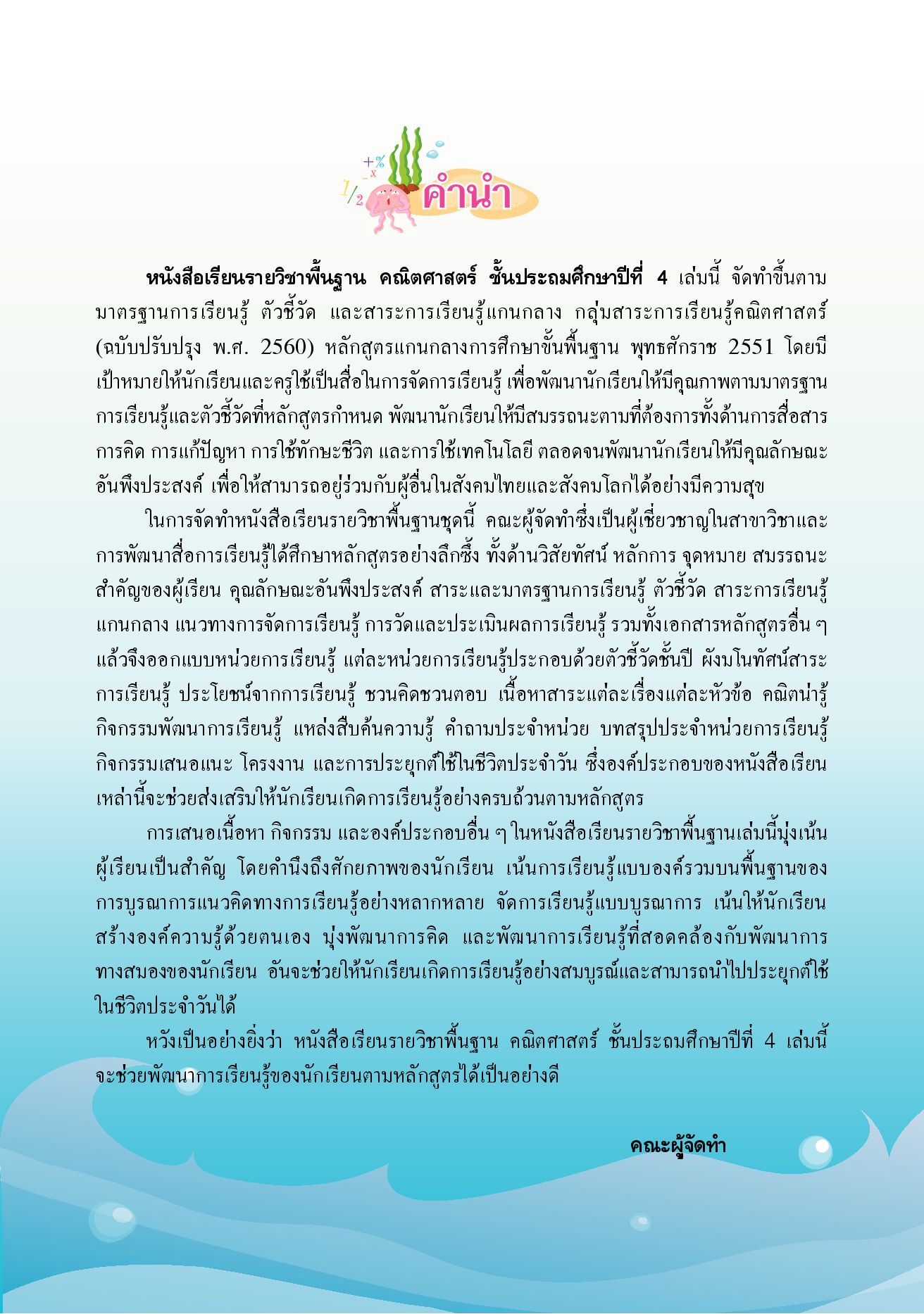 หนังสือเรียน รายวิชาพื้นฐานคณิตศาสตร์ชั้นประถมศึกษาปีที่ 4