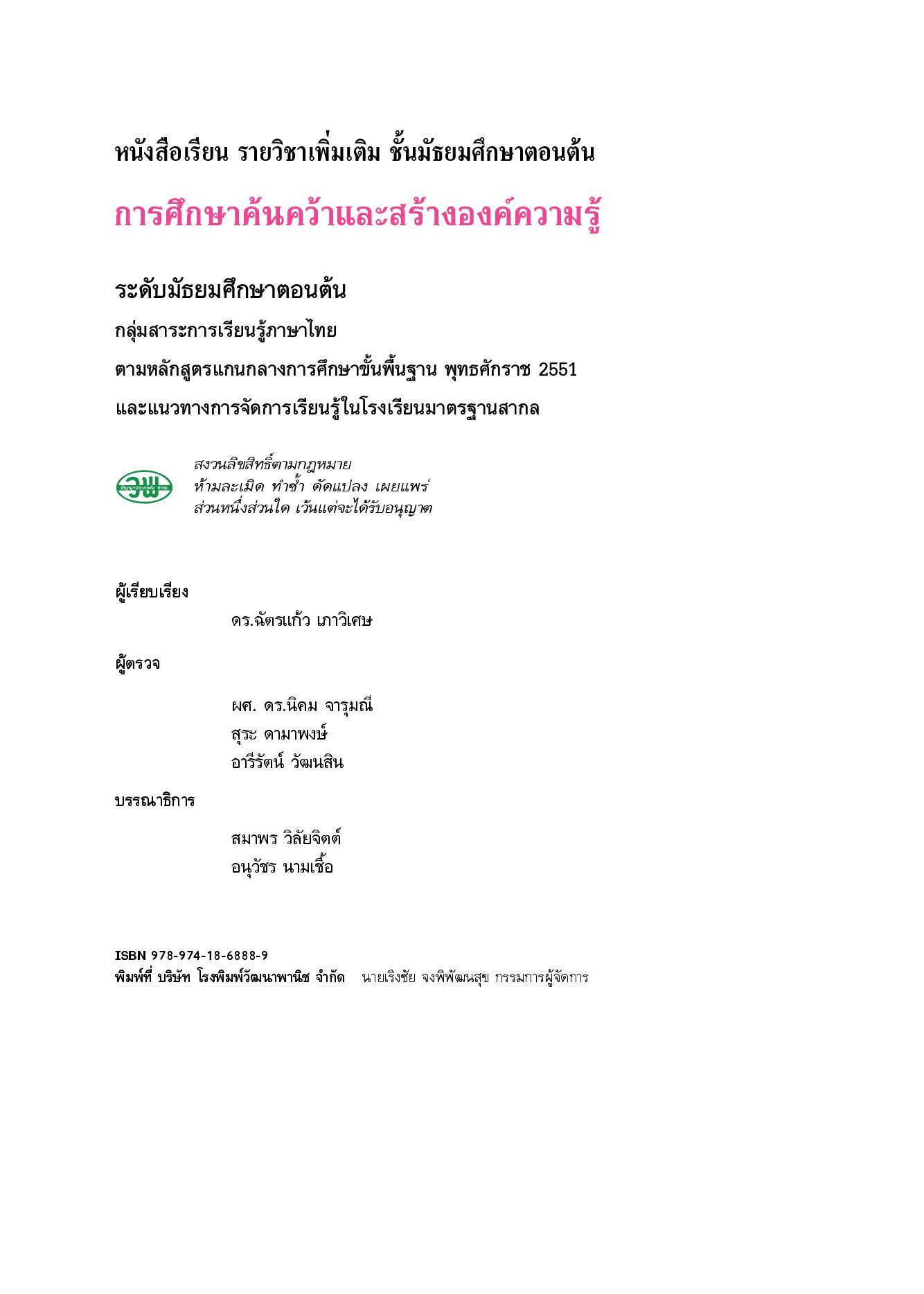 - สำนักพิมพ์ : บริษัท สำนักพิมพ์วัฒนาพานิช จำกัด