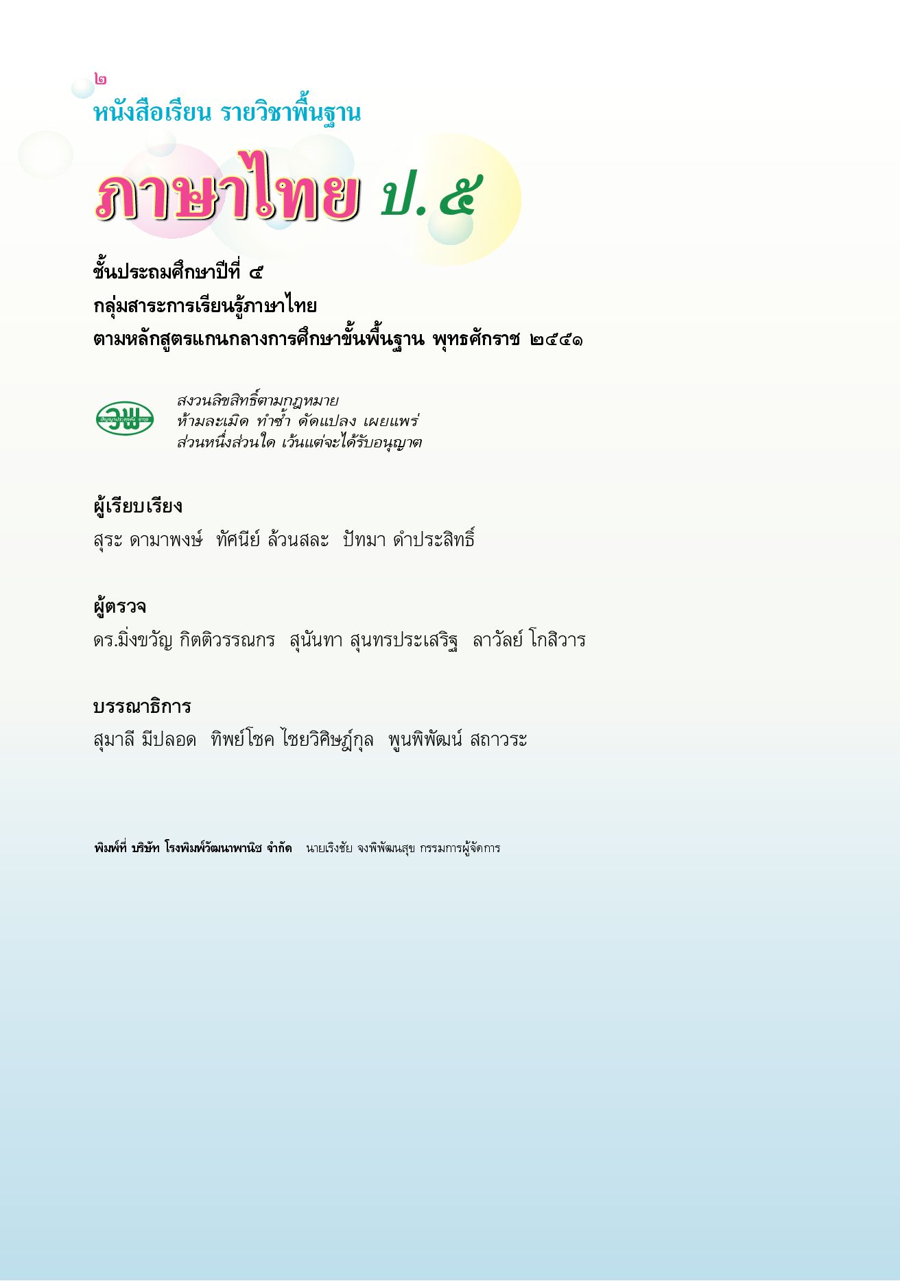 หนังสือเรียนรายวิชาพื้นฐานภาษาไทย ชั้นประถมศึกษาปีที่ 5