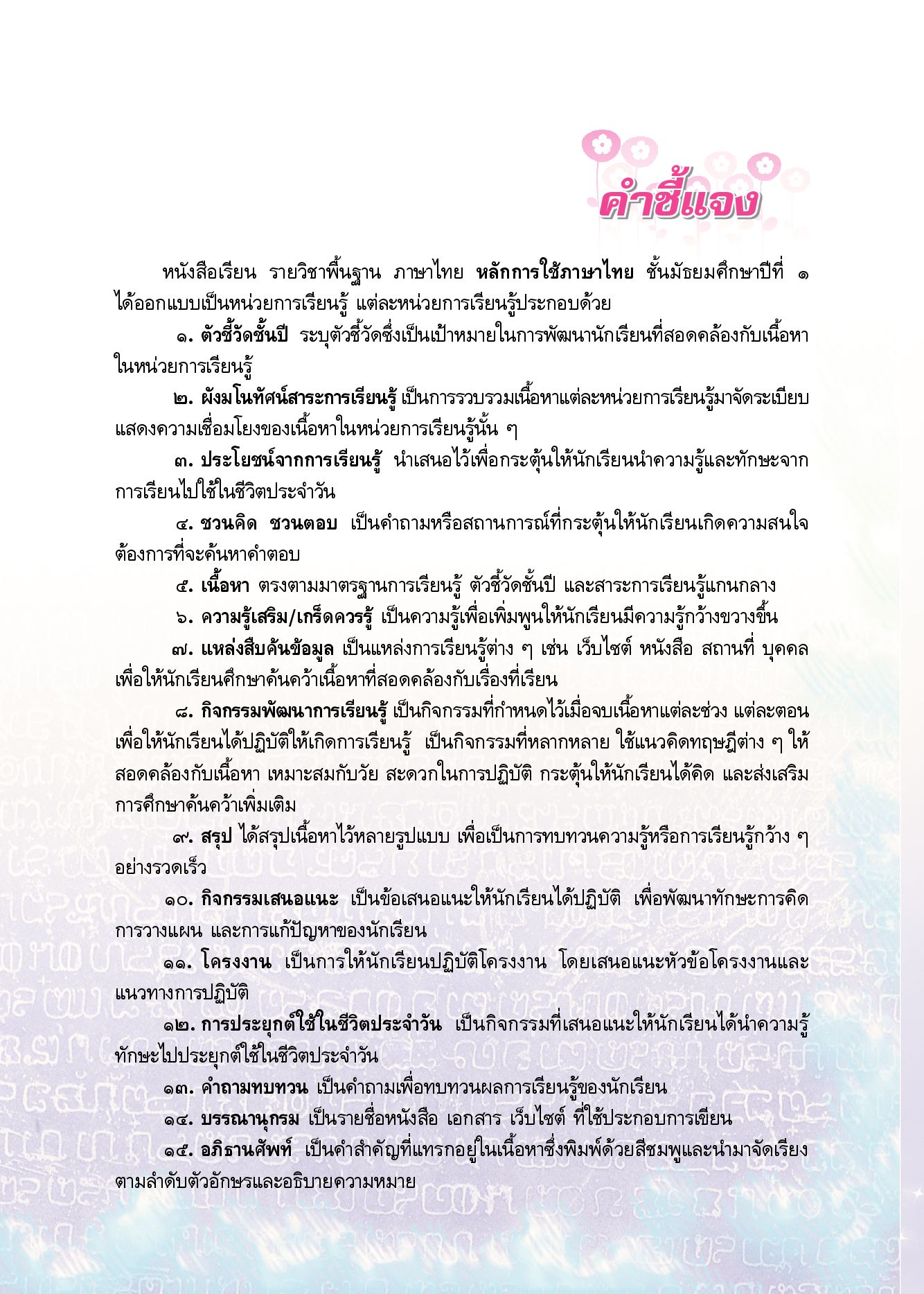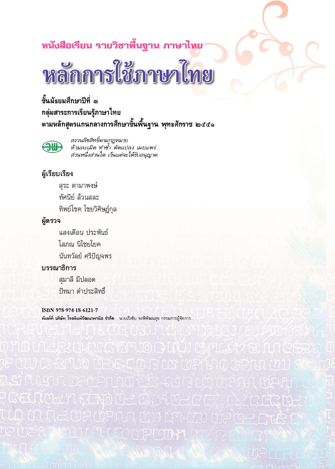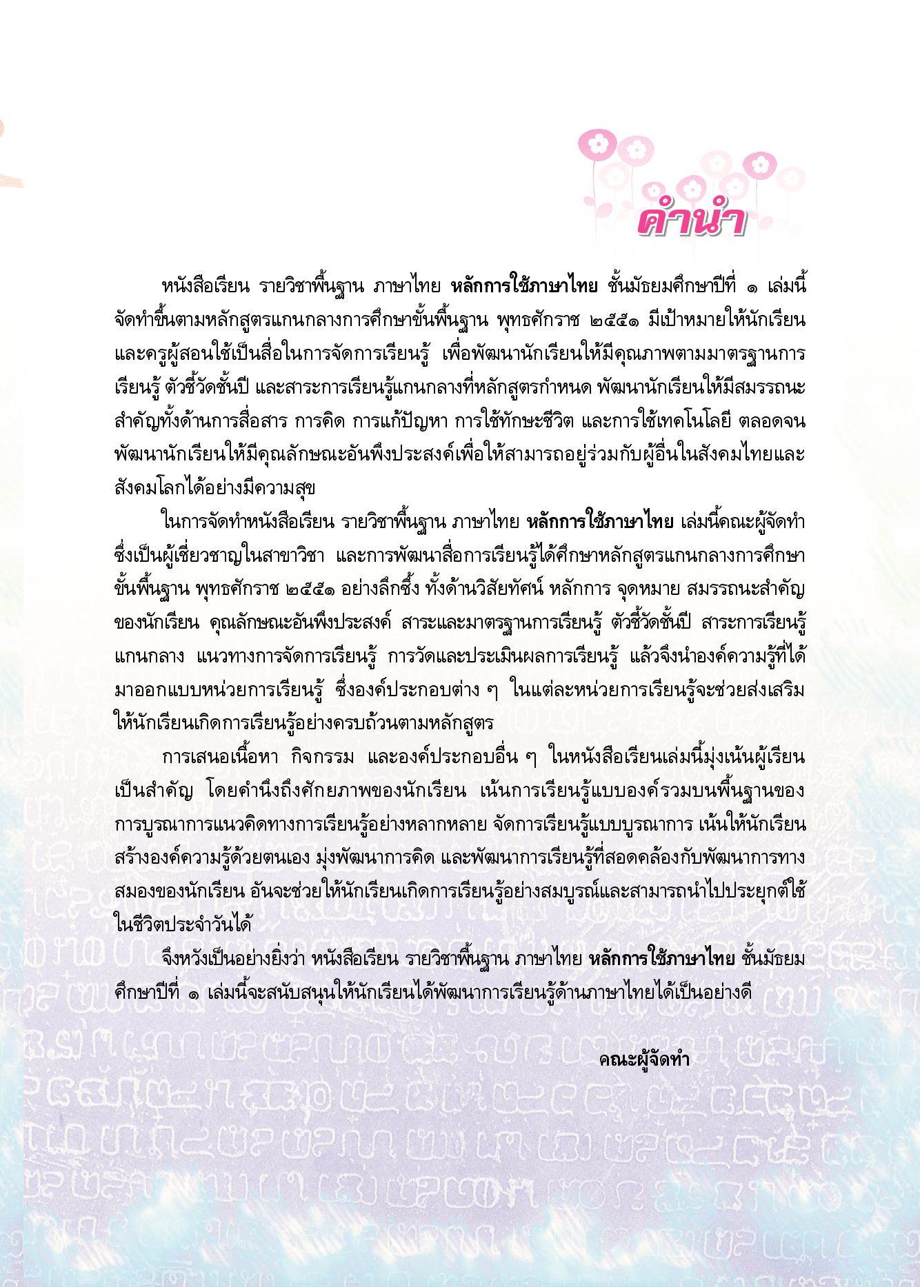 หนังสือเรียนรายวิชาพื้นฐานภาษาไทย ชั้นมัธยมศึกษาปีที่ 1
