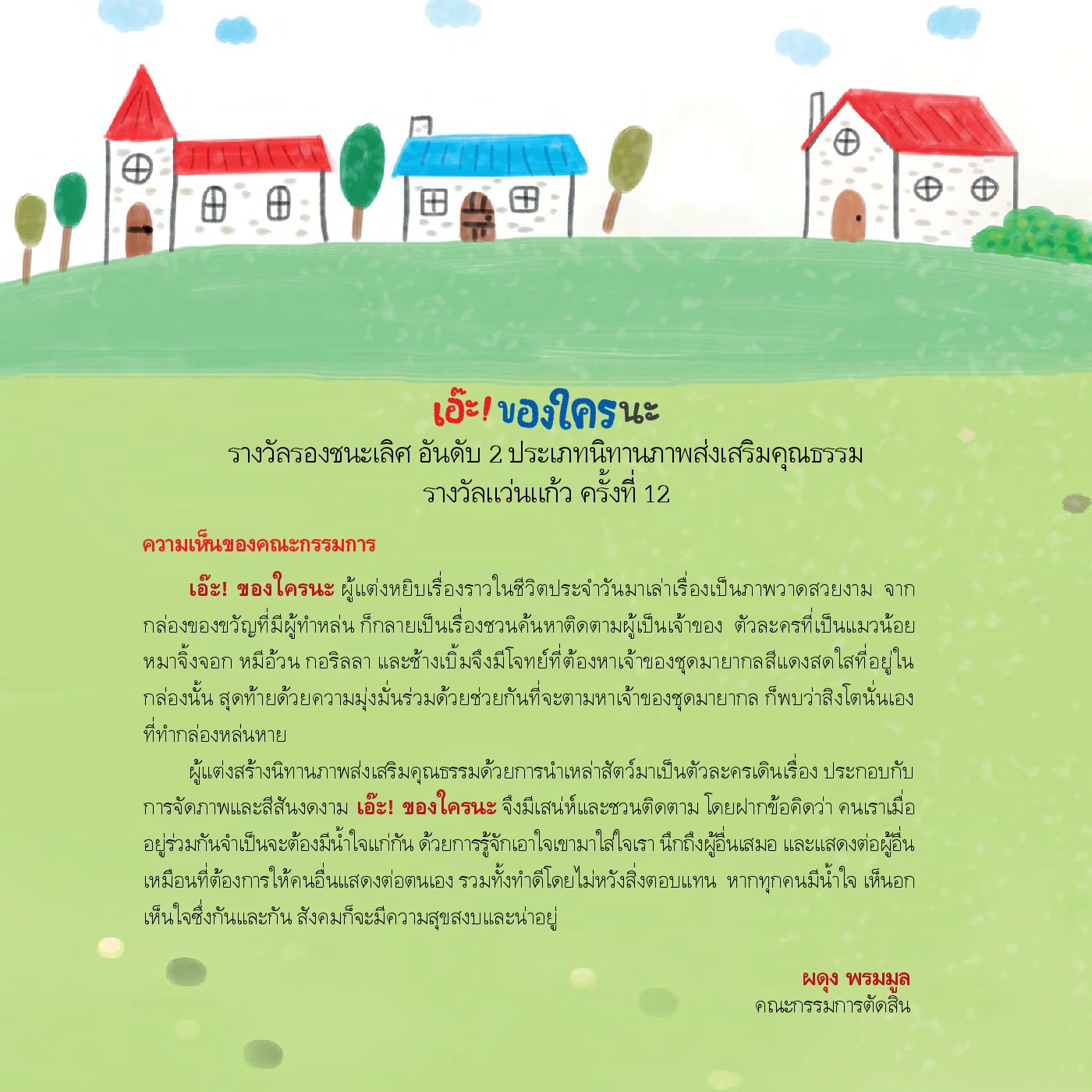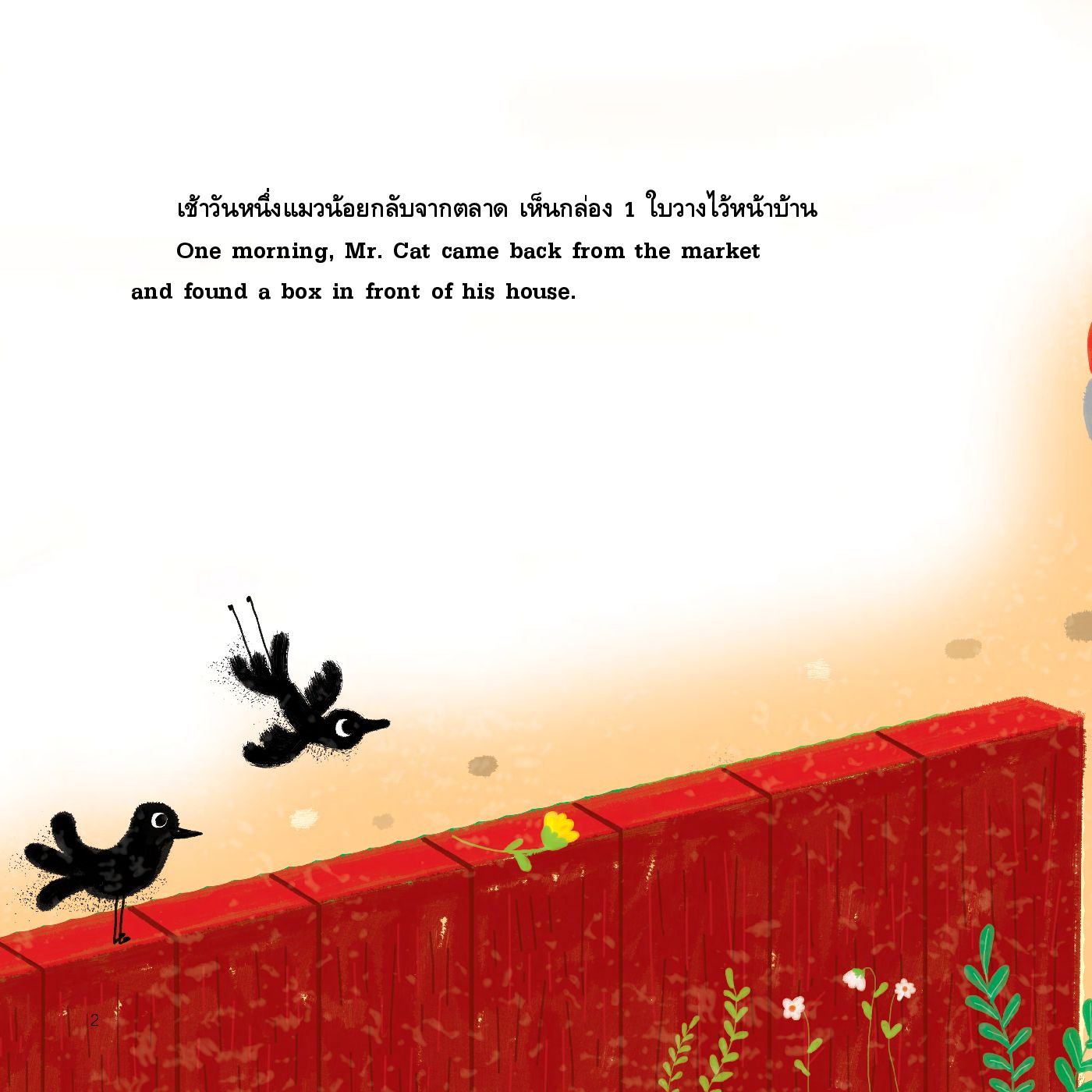 วันหนึ่งมีกล่องปริศนาวางอยู่หน้าบ้านแมวน้อย เมื่อเปิดออกดูก็พบชุดมายากลสีแดงเมื่อลองสวมก็พบว่า ชุดนี้ใหญ่เกินไปสำหรับมันแมวน้อยจึงออกตามหาเจ้าของชุดทั้งคุณหมีใหญ่ คุณกอริลลา สุดท้ายแล้ว ชุดนี้เป็นของใครกันนะ นิทานสองภาษาที่ช่วยส่งเสริมให้เด็กๆมีความซื่อสัตย์ ไม่เอาของของคนอื่นมาเป็นของตน