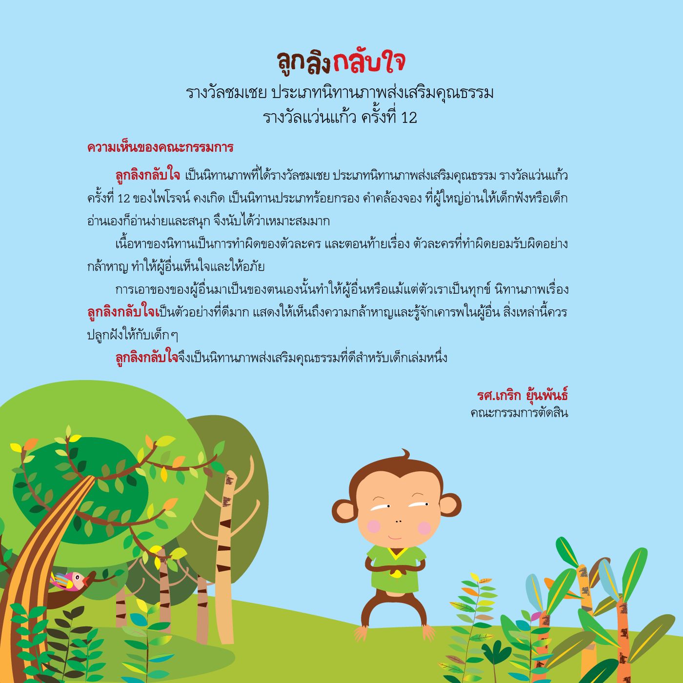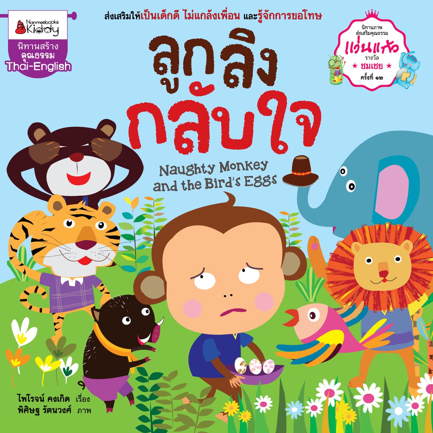 ลูกลิงจอมซนแอบเอาไข่ของแม่นกไปซ่อน แม่นกและสัตว์ต่าง ๆ ต้องออกตามหากันให้วุ่น จนตกดึกลูกลิงคิดจะไปเอาไข่ที่ซ่อนไว้ แต่ในป่าน่ากลัวเหลือเกิน มันจึงส่งเสียงร้องขอความช่วยเหลือ แม่นกได้ยินจึงมาช่วยพาออกจากป่าเหตุการณ์เป็นเช่นนี้เจ้าลูกลิงจอมซนจะทำอย่างไร นิทานสองภาษาที่ช่วยส่งเสริมให้เด็กๆรู้จักการขอโทษและสำนึกผิด