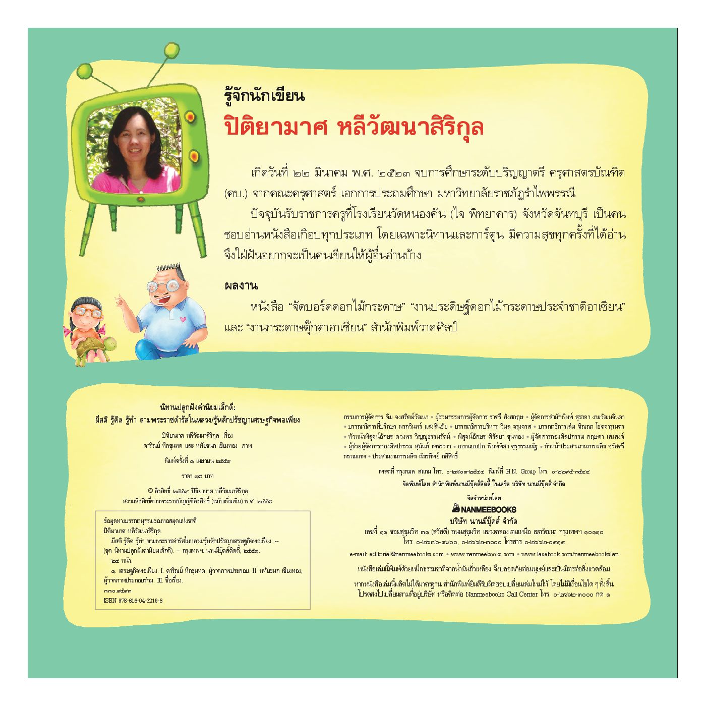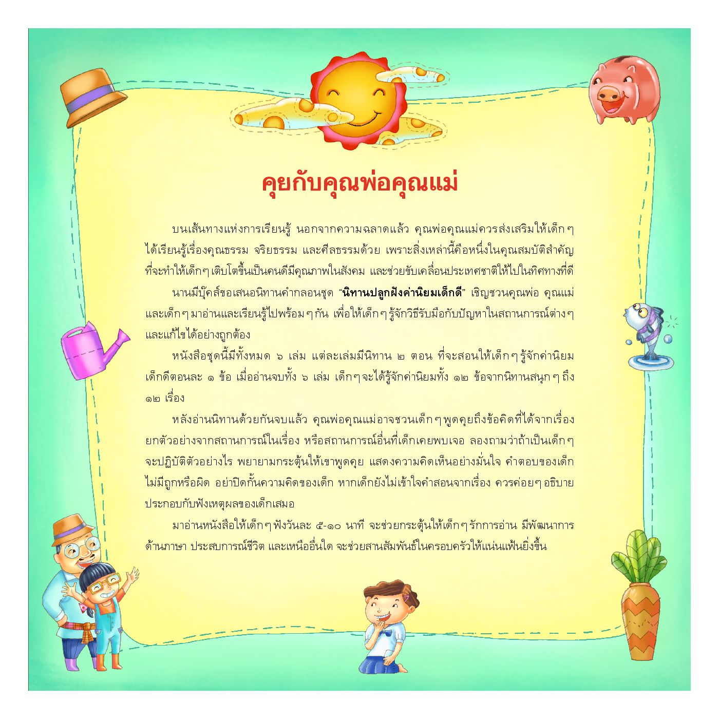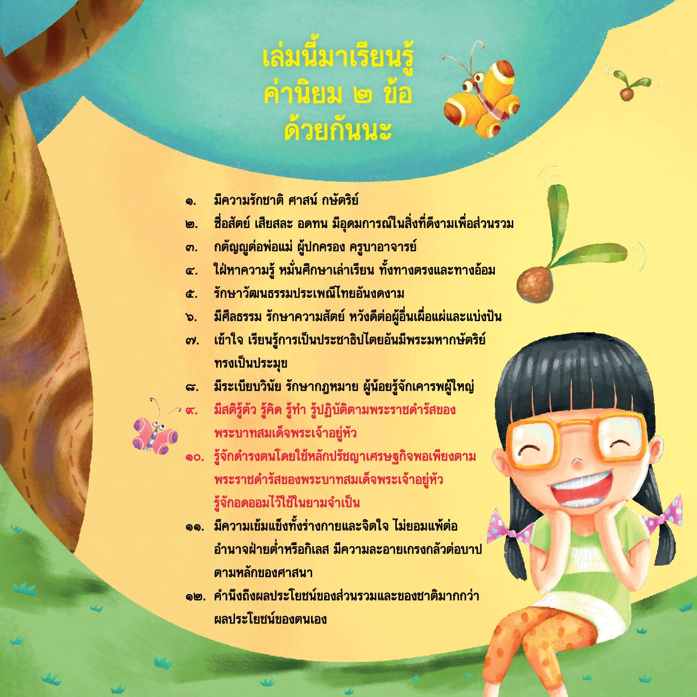 นิทานคำกลอนส่งเสริมค่านิยมหลักของคนไทยทั้ง 12 ประการ เล่มนี้มีเนื้อหาส่งเสริมให้เด็กๆมีสติ มีสมาธิ และรู้จักการดำเนินชีวิตตามหลักปรัชญาเศรษฐกิจพอเพียง