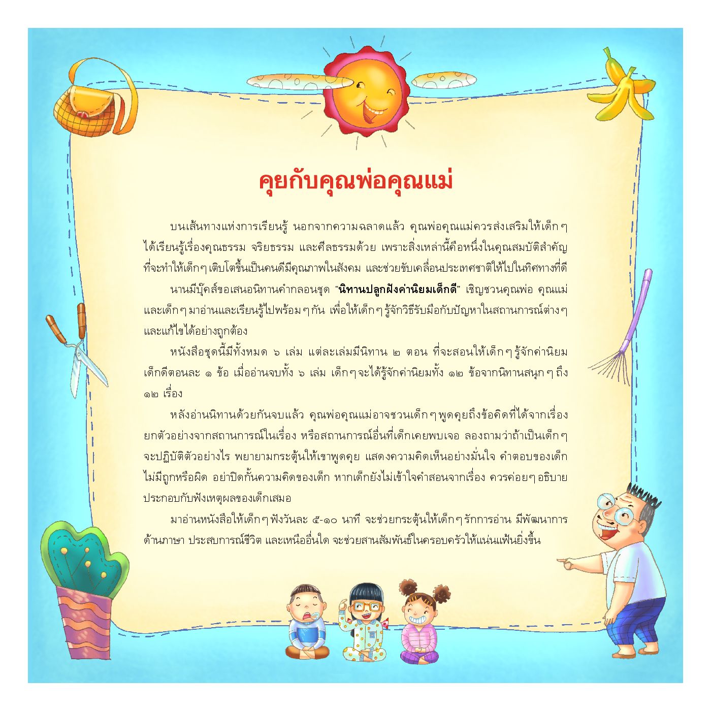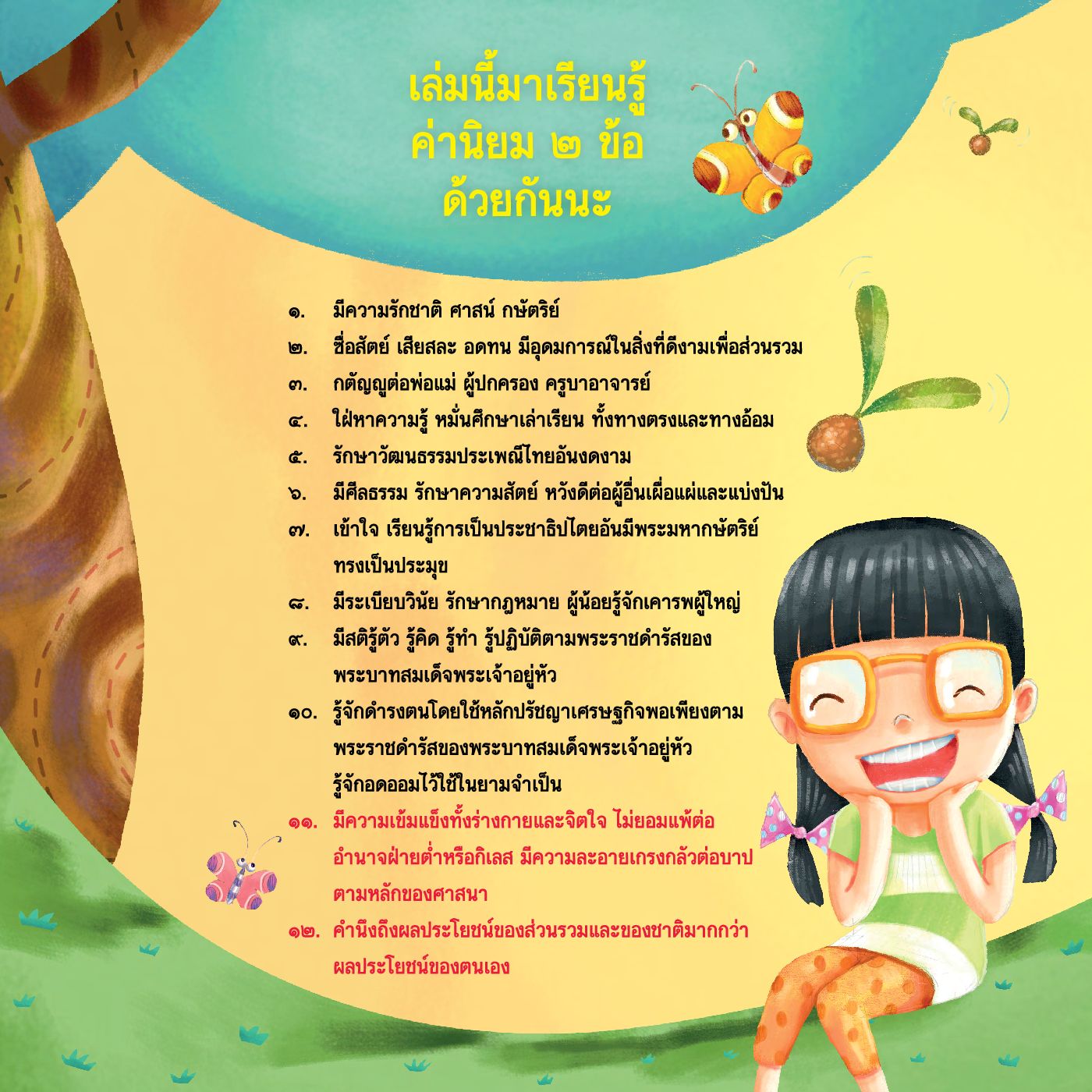 นิทานคำกลอนส่งเสริมค่านิยมหลักของคนไทยทั้ง 12 ประการ เล่มนี้มีเนื้อหาส่งเสริมให้เด็กๆรู้จักประเพณีและวัฒนธรรมชองไทยทั้ง 4 ภาค และรู้จักการแบ่งปัน
