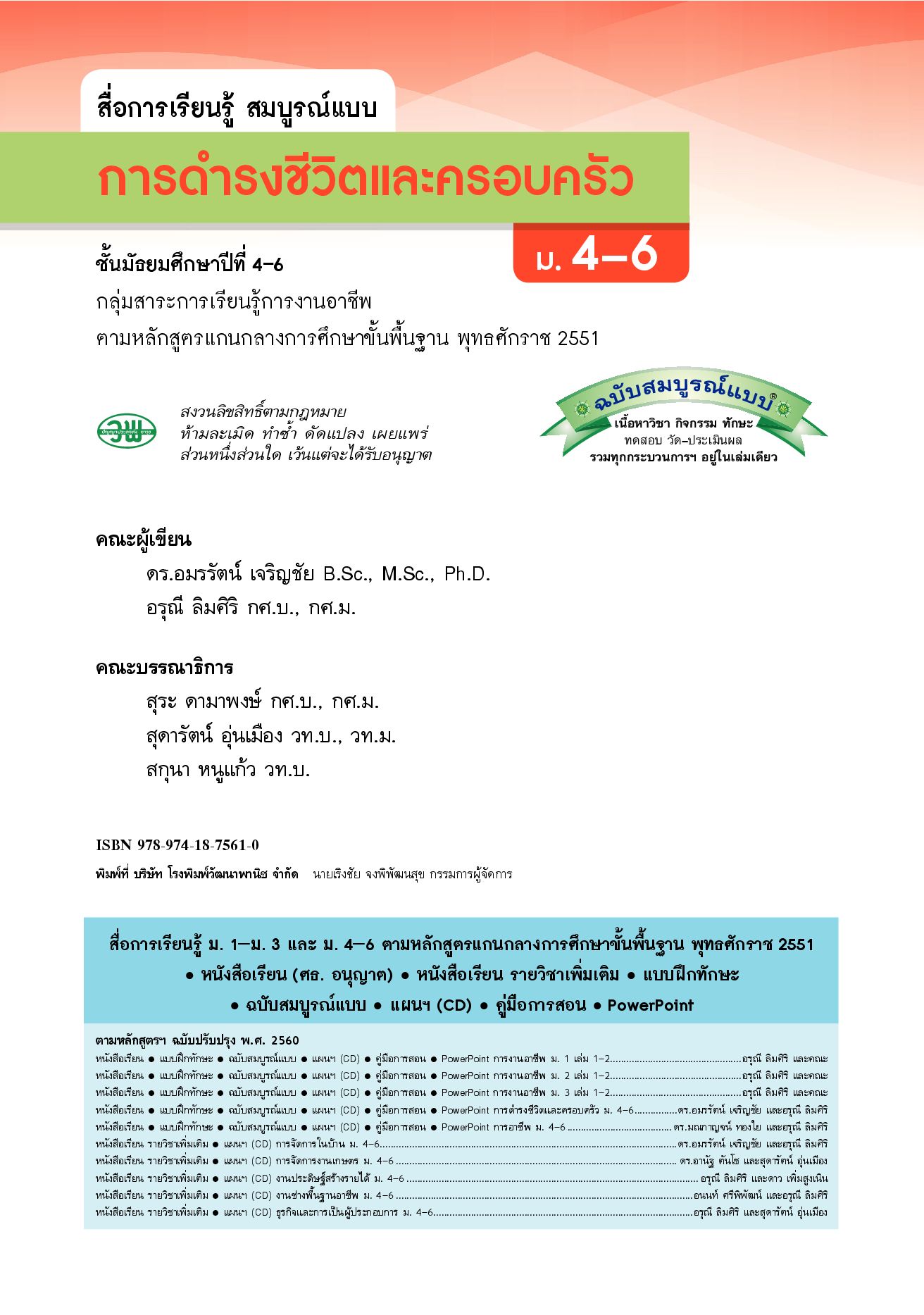 สื่อการเรียนรู้สมบูรณ์แบบการดำรงชีวิตและครอบครัว ชั้นมัธยมศึกษาปีที่ 4-6
