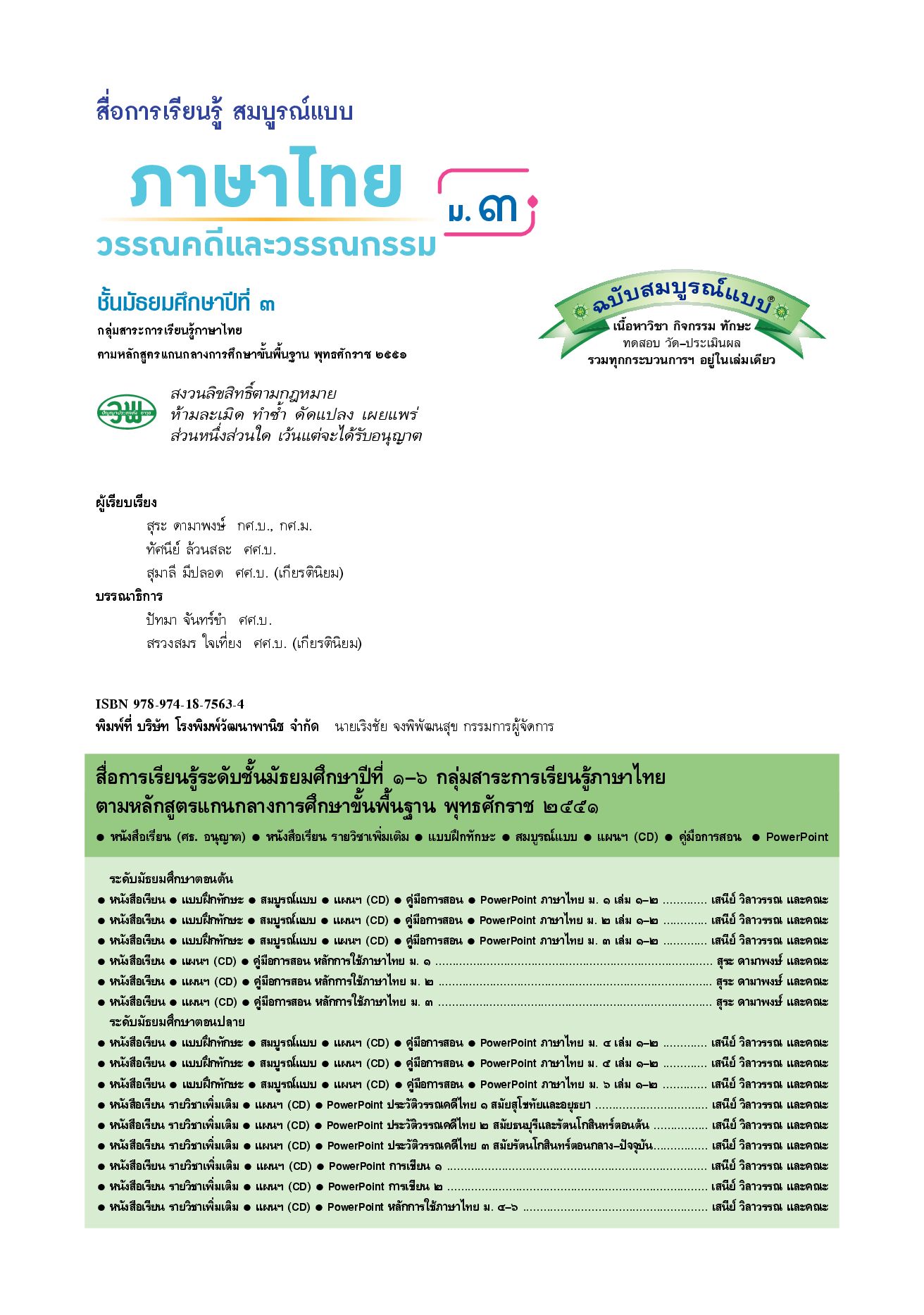 สื่อการเรียนรู้สมบูรณ์แบบภาษาไทย วรรณคดีและวรรณกรรม ม.3