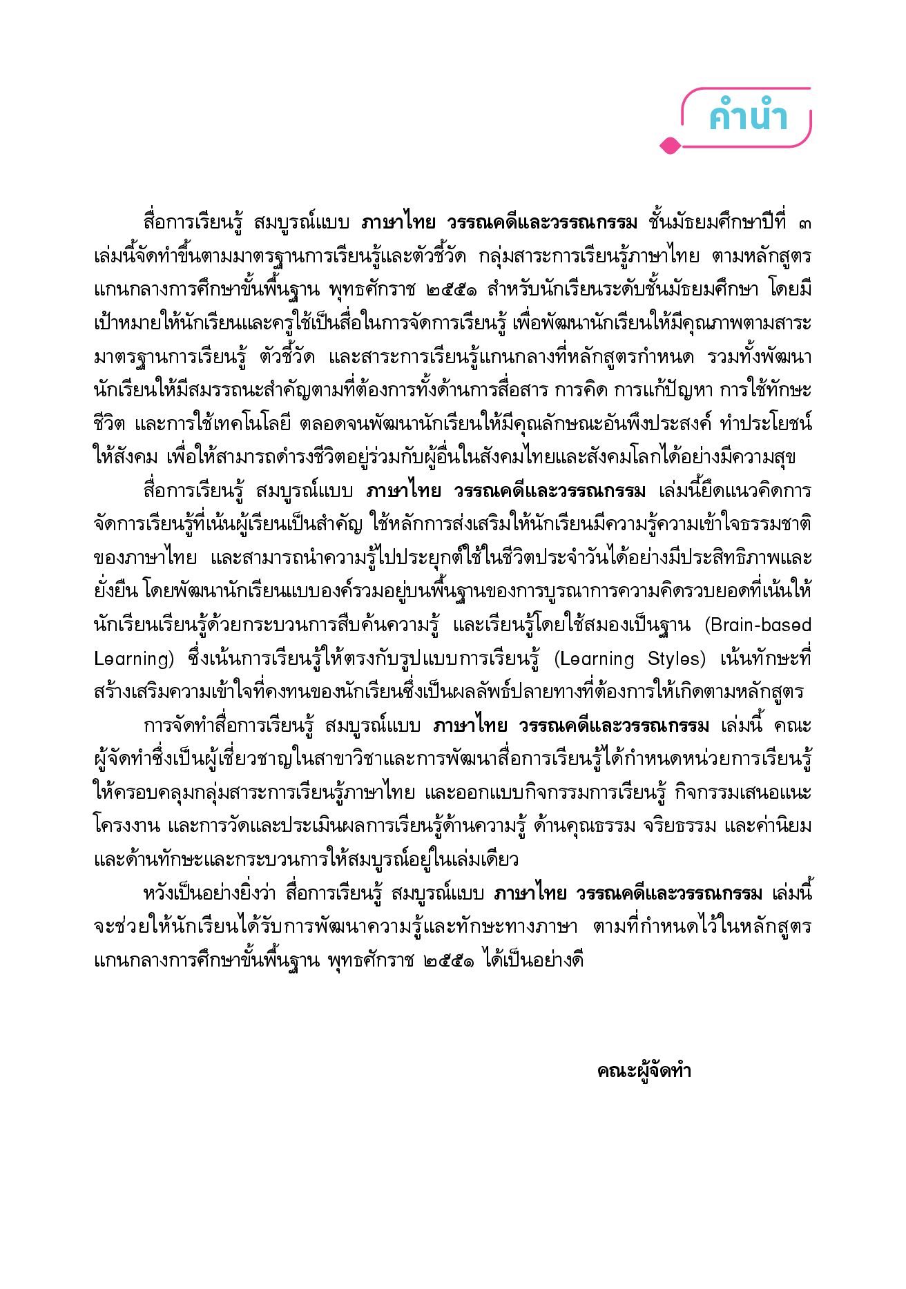 สื่อการเรียนรู้สมบูรณ์แบบภาษาไทย วรรณคดีและวรรณกรรม ชั้นมัธยมศึกษาปีที่ 3