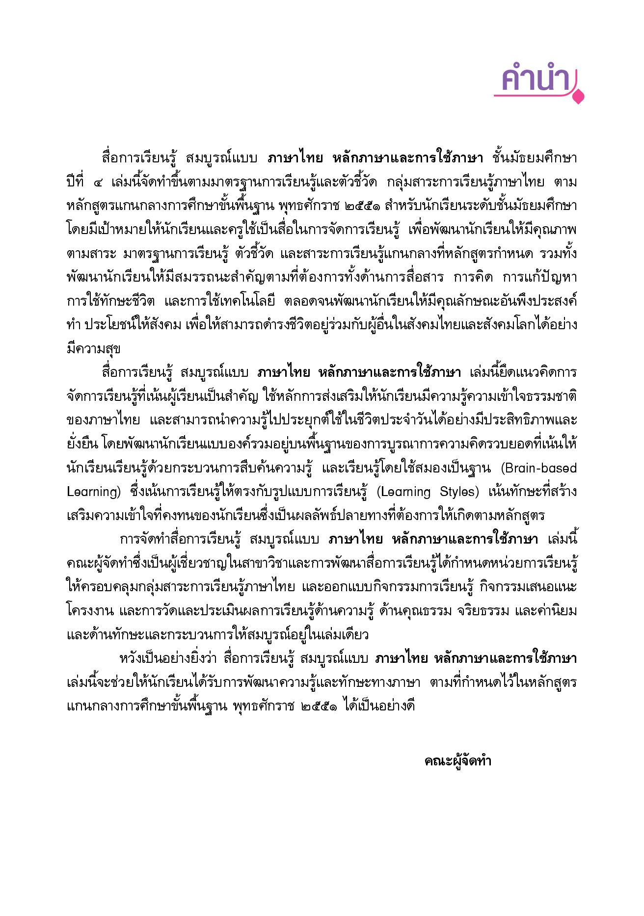 สื่อการเรียนรู้สมบูรณ์แบบหลักภาษาและการใช้ภาษา ชั้นมัธยมศึกษาปีที่ 4