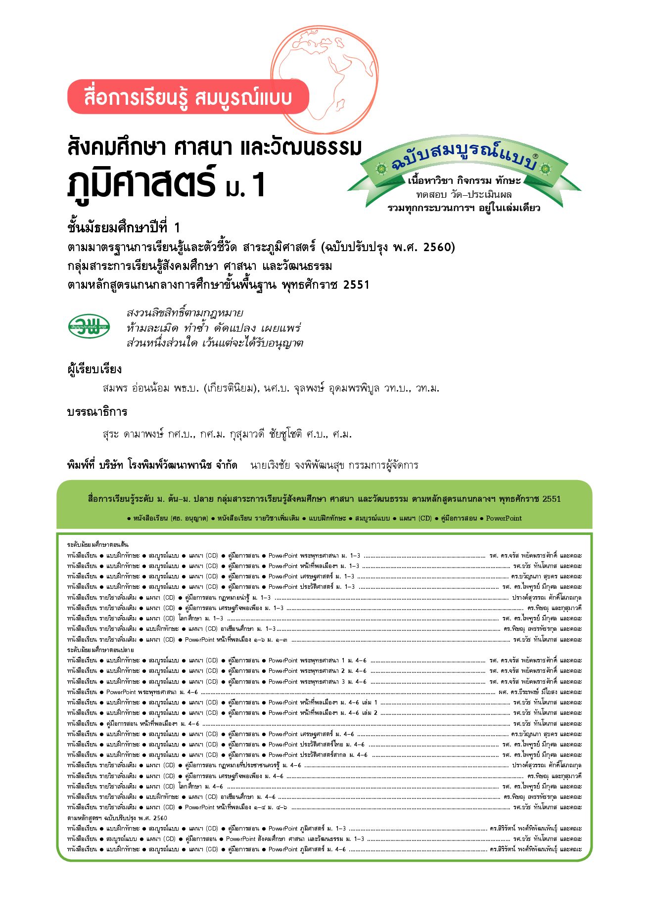 สื่อการเรียนรู้สมบูรณ์แบบภูมิศาสตร์ ม.1