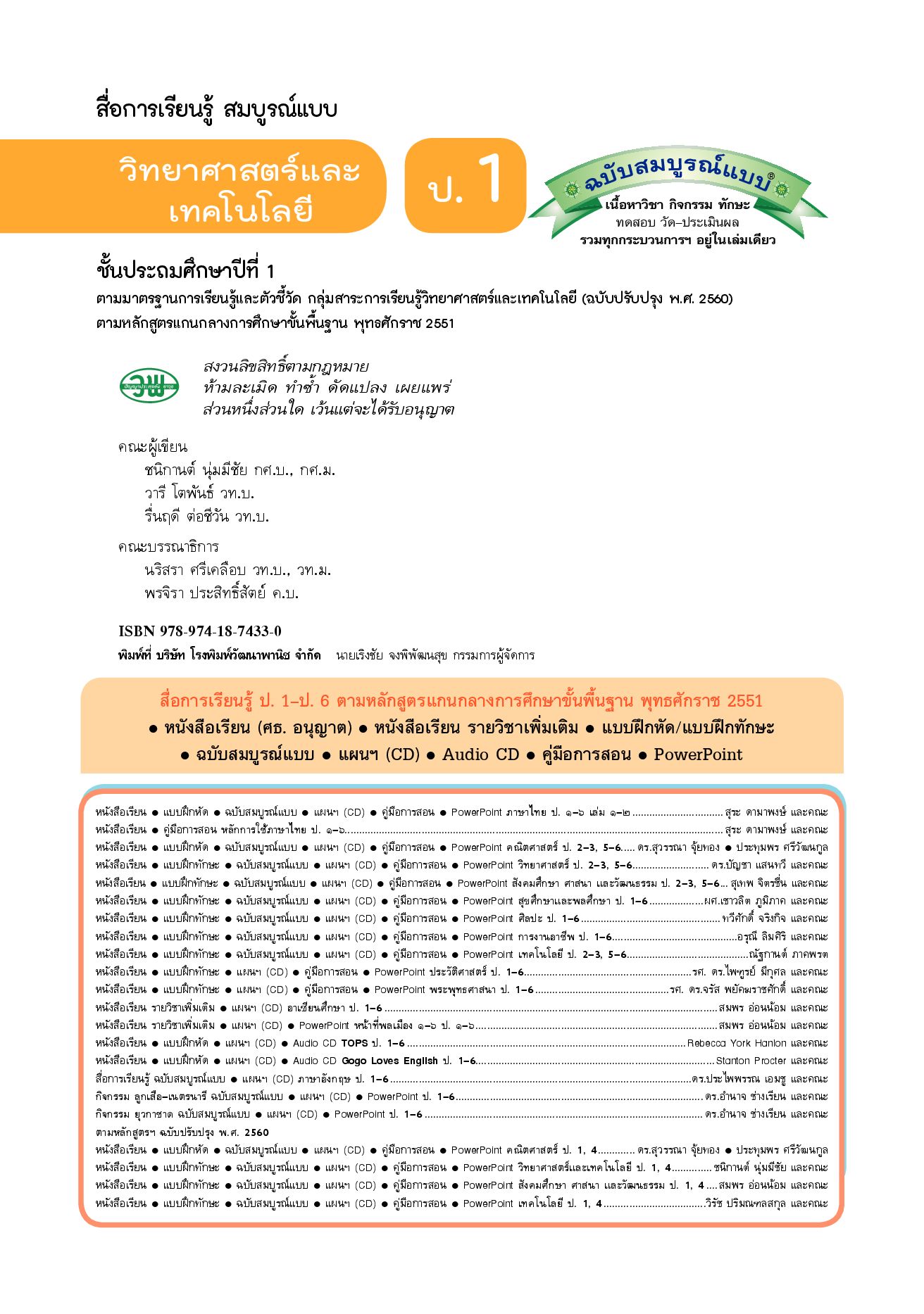 สื่อการเรียนรู้สมบูรณ์แบบ วิทยาศาสตร์ ชั้นประถมศึกษาปีที่ 1