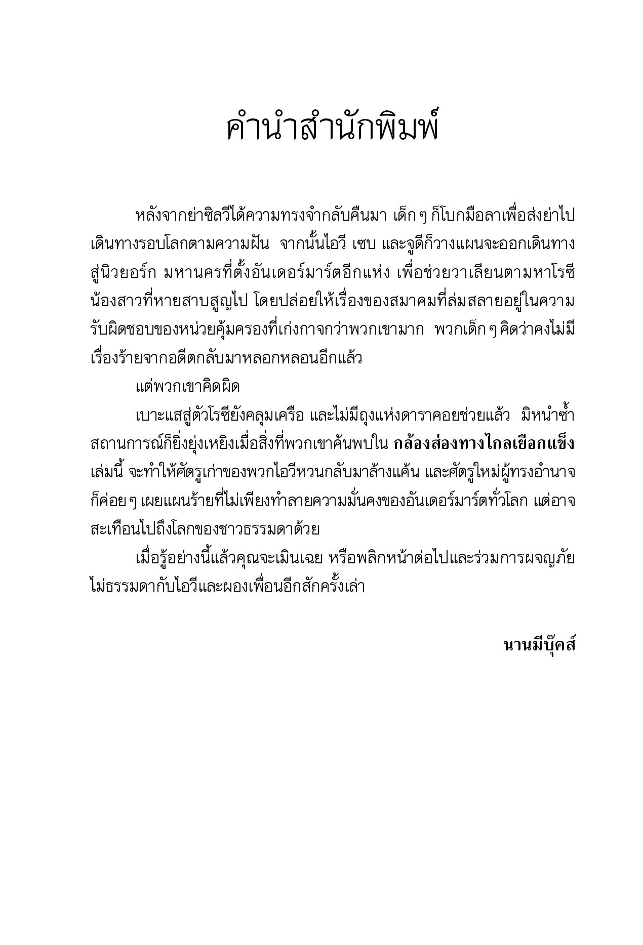 ถึงเวลาแล้วที่เด็กๆ จะต้องเลือก ระหว่างความปลอดภัยของโรซี กับโลกของชาวไม่ธรรมดา! เมื่อไอวีกับเซบเดินทางมาถึงนูบรุก อันเดอร์มาร์ตของชาวไม่ธรรมดาที่ซ่อนอยู่ใต้นครนิวยอร์ก สองพี่น้องคิดเพียงว่าจะช่วยวาเลียนตามหาโรซี น้องสาวของเขาที่หายตัวไป ทว่าเมื่อสืบเสาะ พวกเขาก็รู้ว่ายังมีคนอื่นต้องการตัวโรซี่ แถมยังเป็นคนที่ชั่วร้ายมากด้วย เด็กๆจึงต้องใช้สติปัญญาและความกล้าหาญทั้งหมดที่มีเพื่อหาเธอให้พบก่อนใคร
