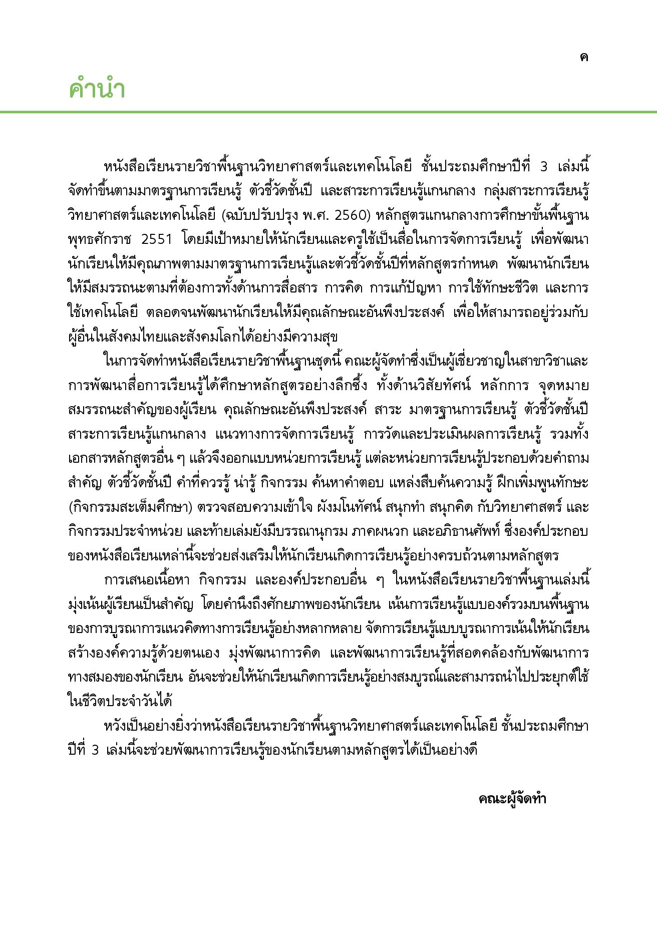 หนังสือเรียนรายวิชาพื้นฐานวิทยาศาสตร์ ชั้นประถมศึกษาปีที่ 3