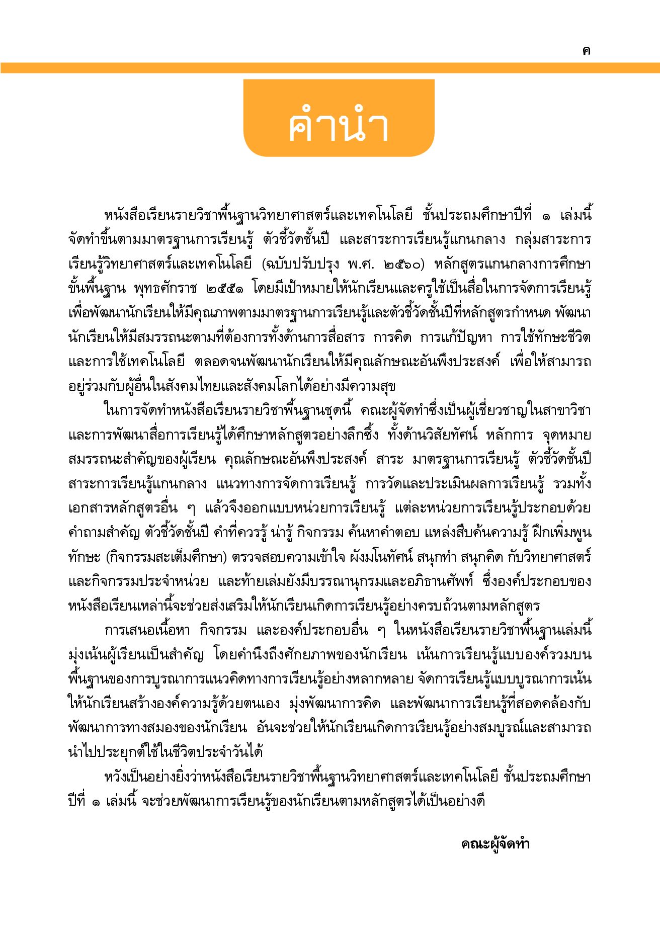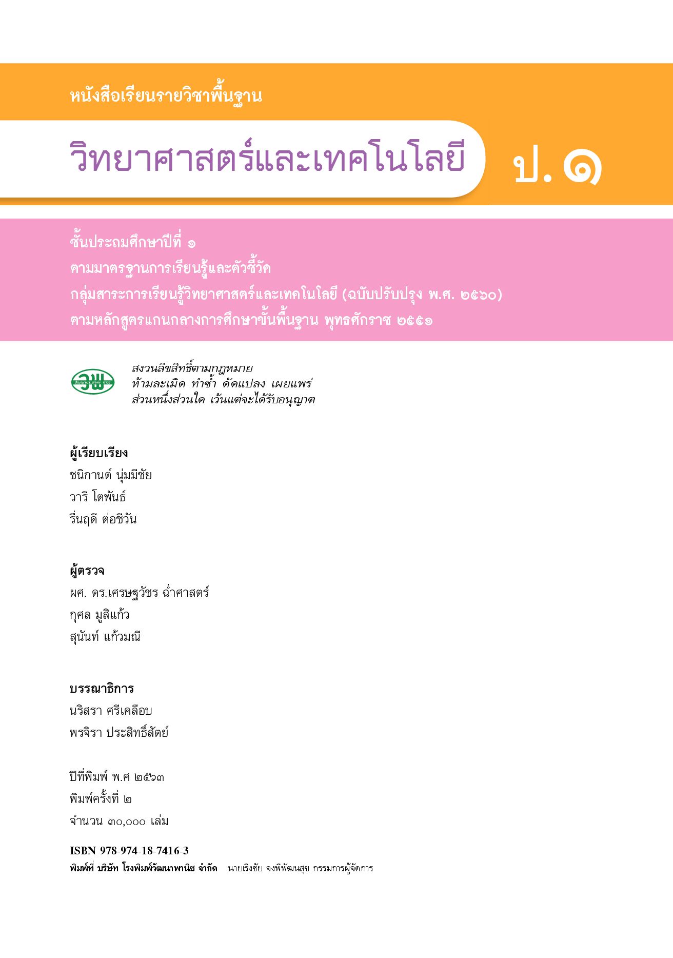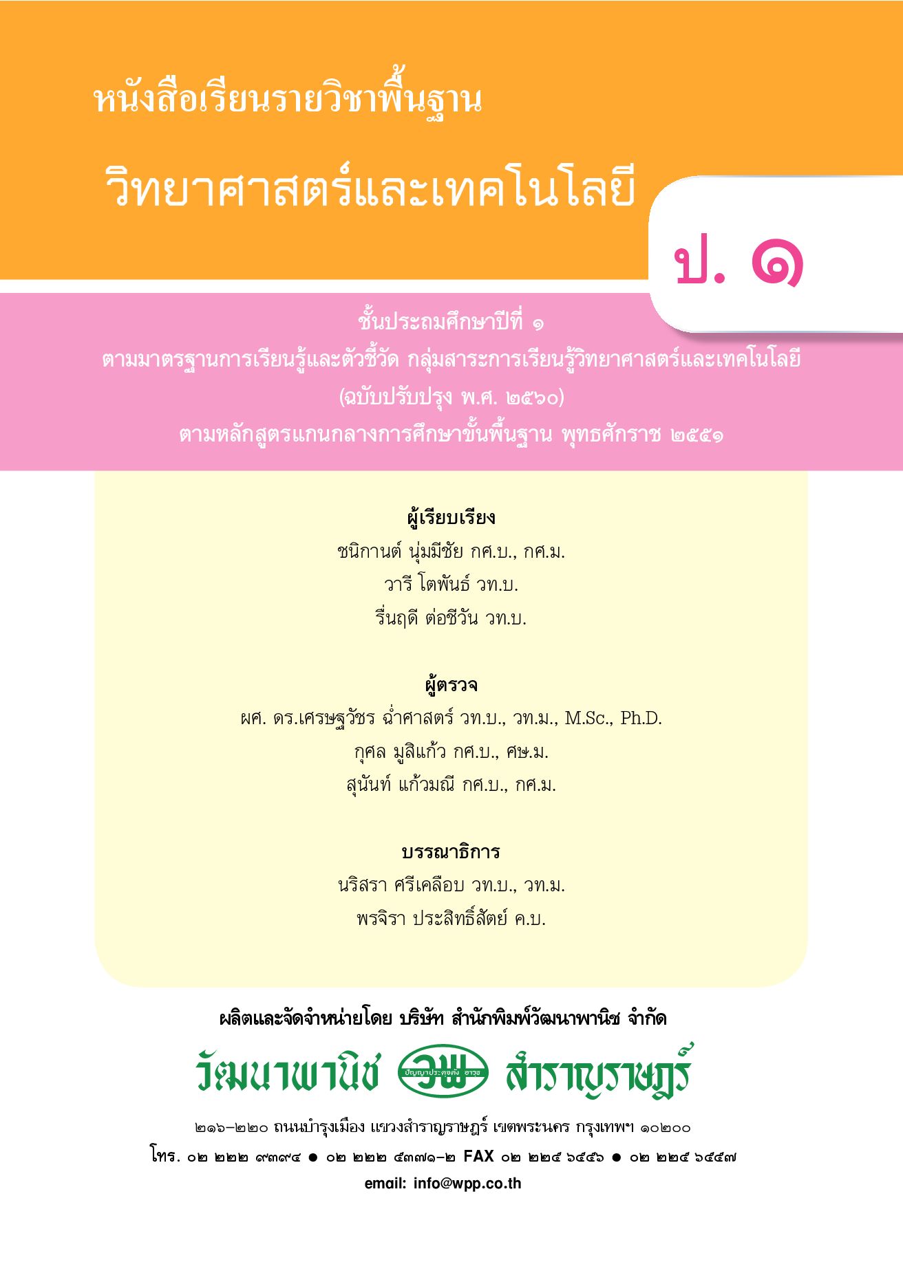 หนังสือเรียนรายวิชาพื้นฐานวิทยาศาสตร์ ชั้นประถมศึกษาปีที่ 1