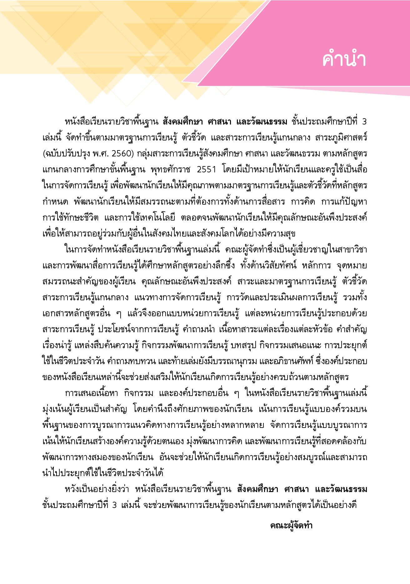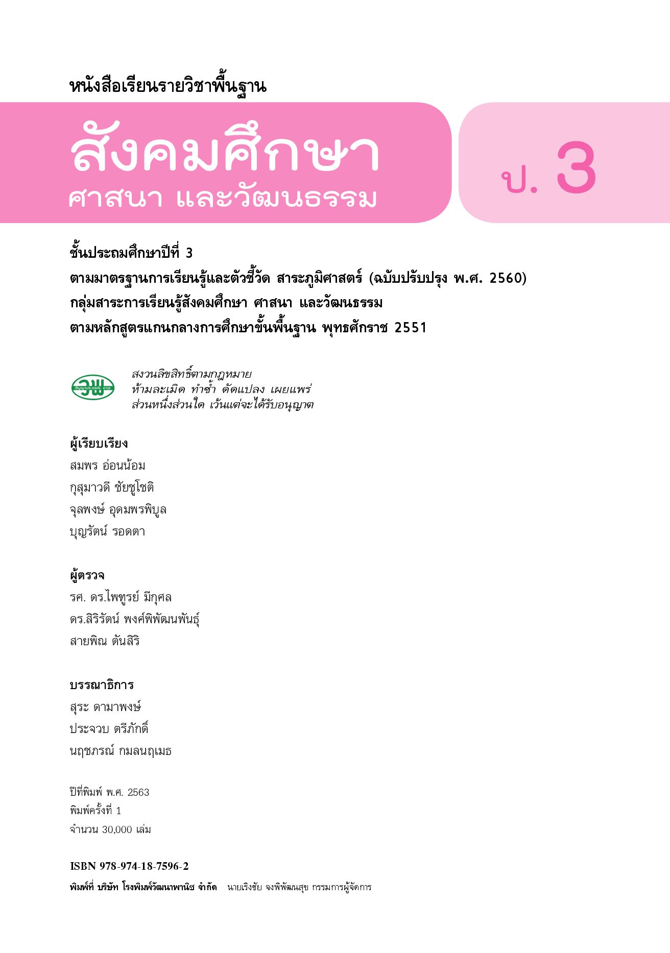 หนังสือเรียนรายวิชาพื้นฐานสังคมศึกษา ชั้นประถมศึกษาปีที่ 3