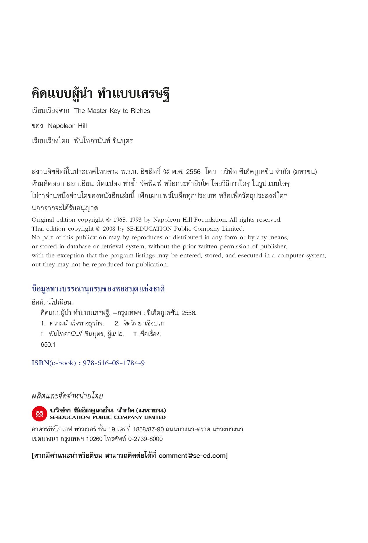 - Author : Napoleon Hill (นโปเลียน ฮิลล์) ผู้แปล พ.ท. อานันท์ ชินบุตร