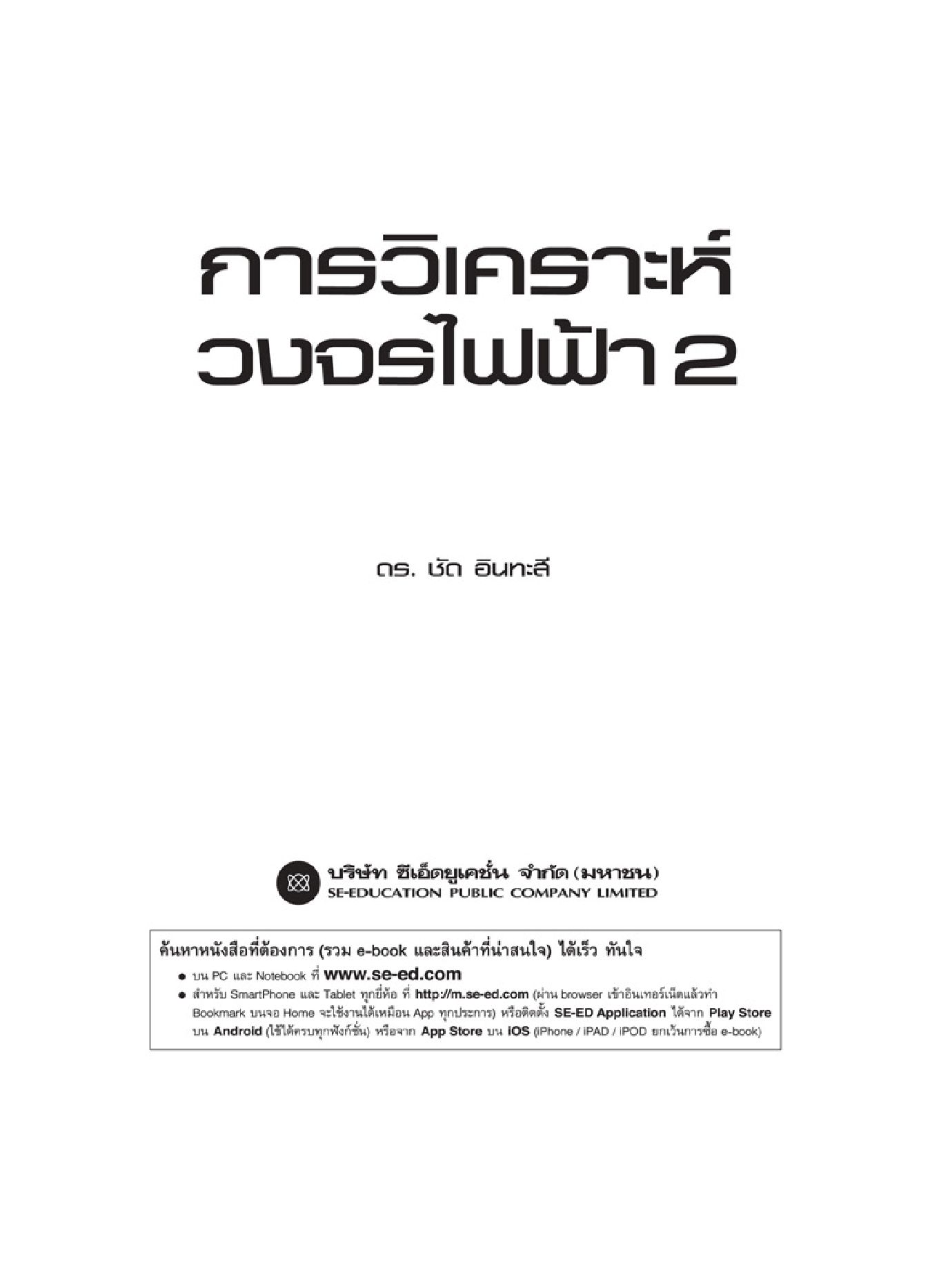 "การวิเคราะห์วงจรไฟฟ้า 2" มีเนื้อหาต่อเนื่องจาก การวิเคราะห์วงจรไฟฟ้า 1 โดยในเล่มประกอบด้วย กำลังงานในสถานะอยู่ตัวไฟสลับวงจรสามเฟส ความพี่เชิงซ้อนและฟังก์ชันวงจรข่าย ผลตอบสนองความถี่ อนุกรมฟูเรียร์และการแปลงฟูเรียร์ และการแปลงลาปลาซ ตามลำดับ เพื่อให้ผู้เรียนมีความเข้าใจถึงการวิเคราะห์วงจรเฟสเซอร์ทั่วไปในขอบเขตความถี่เชิงซ้อน อัตราส่วนการตอบสนองเอาต์พุตต่ออินพุต ฟังก์ชันวงจรข่ายที่แปรผันฟูเรียร์ และวงจรที่ถูกบังคับด้วยสัญญาณใดๆ ก็ตาม ทั้งในสถานะคงตัวและชั่วขณะ ด้วยวิธีการแปลงลาปลาซ นอกจากนี้ในแต่ละบทยังประกอบด้วยแบบฝึกหัดท้ายบท เพื่อให้ผู้เรียนได้ฝึกคิด คำนวณ วิเคราะห์ และสร้างความเข้าใจในเนื้อหาให้ลึกซึ้งยิ่งขึ้น เหมาสำหรับหลักสูตรปริญญาตรีด้านวิศวกรรมไฟฟ้า