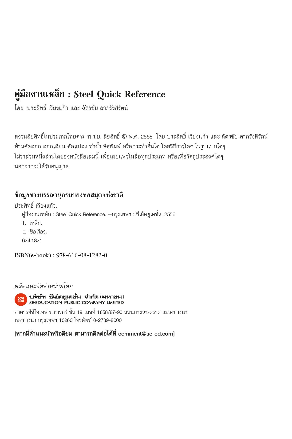 เหมาะสำหรับผู้รับเหมา ห้างร้าน วิศวกร ช่าง อาจารย์ นักศึกษาสาขาวิศวกรรม เพื่อใช้อ้างอิงและประยุกต์ใช้ในการซื้อ-ขาย ออกแบบ ติดตั้ง และบำรุงรักษาด้าน Structural Steel