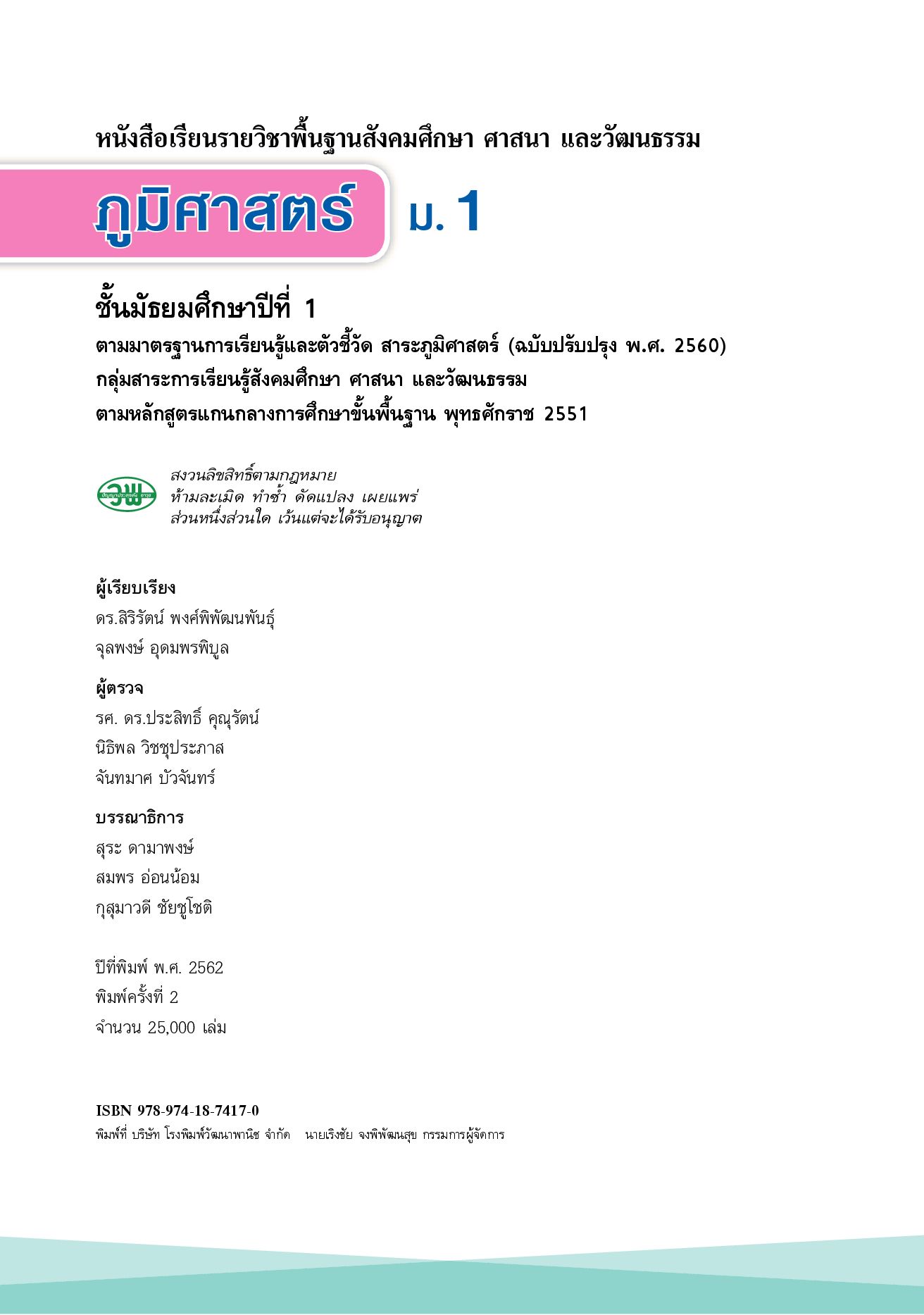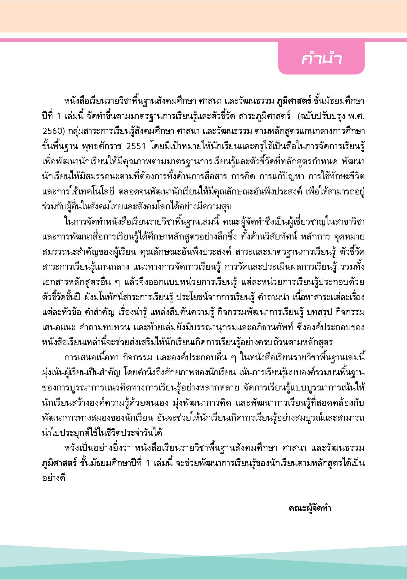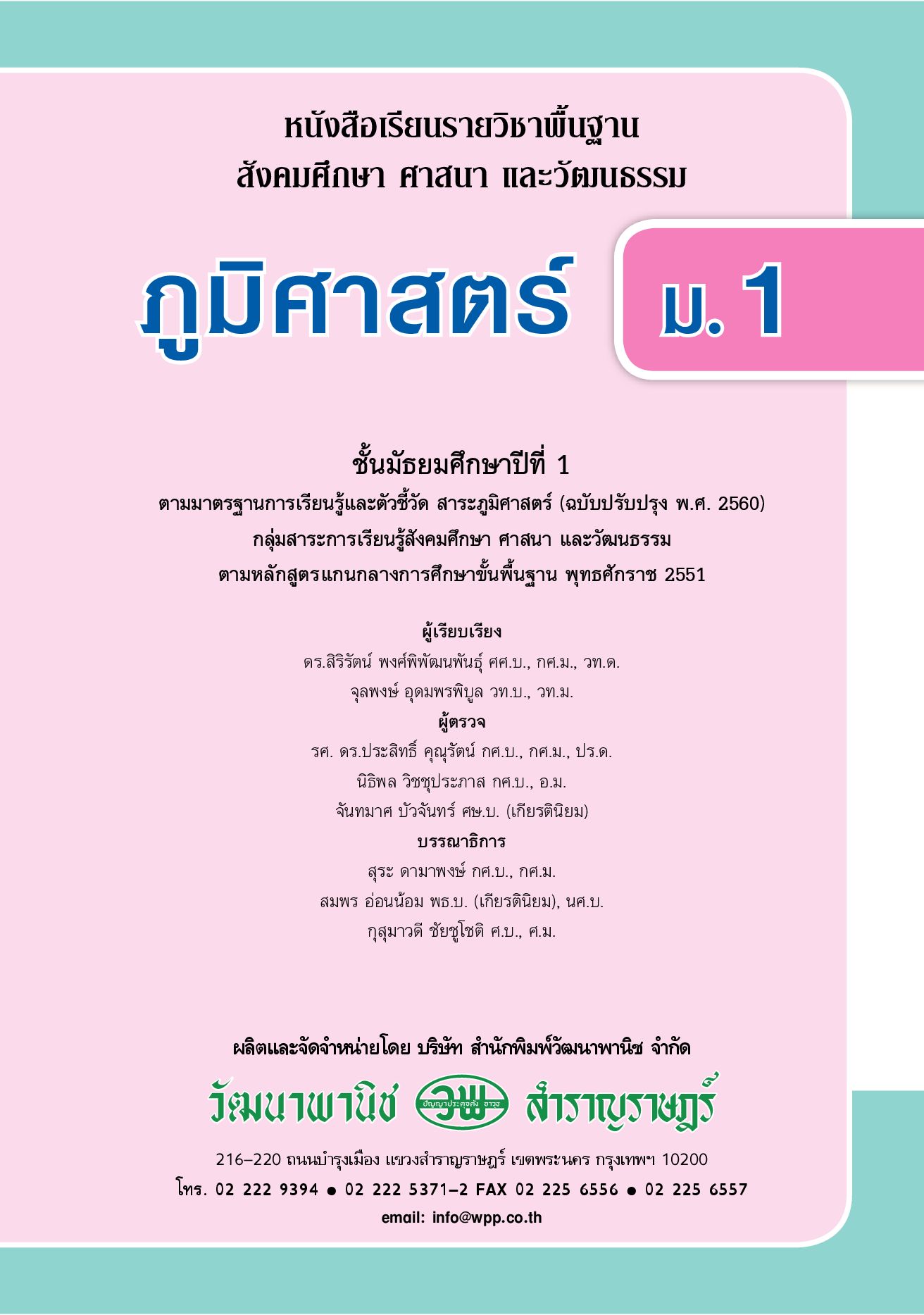 หนังสือเรียนรายวิชาพื้นฐานภูมิศาสตร์ ชั้นมัธยมศึกษาปีที่ 1
