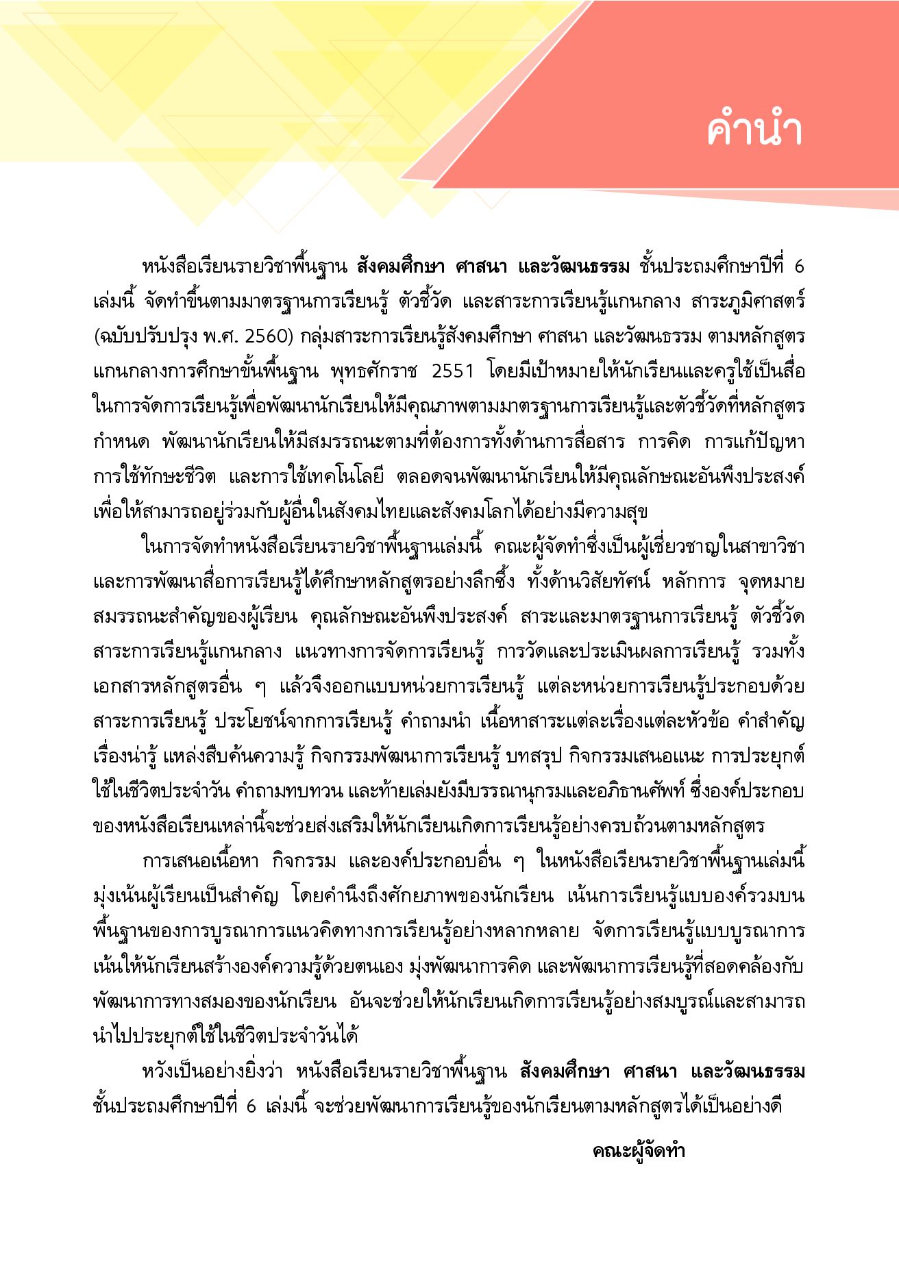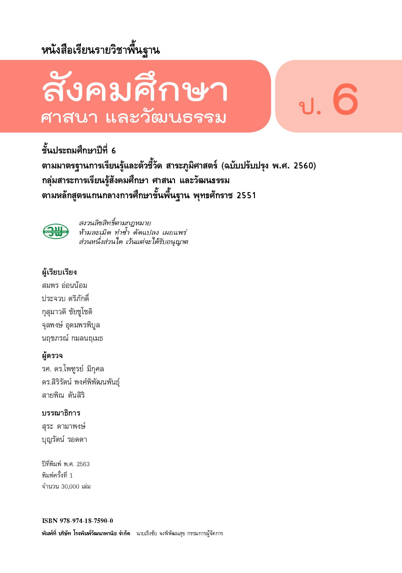 หนังสือเรียนรายวิชาพื้นฐานสังคมศึกษา ชั้นประถมศึกษาปีที่ 6