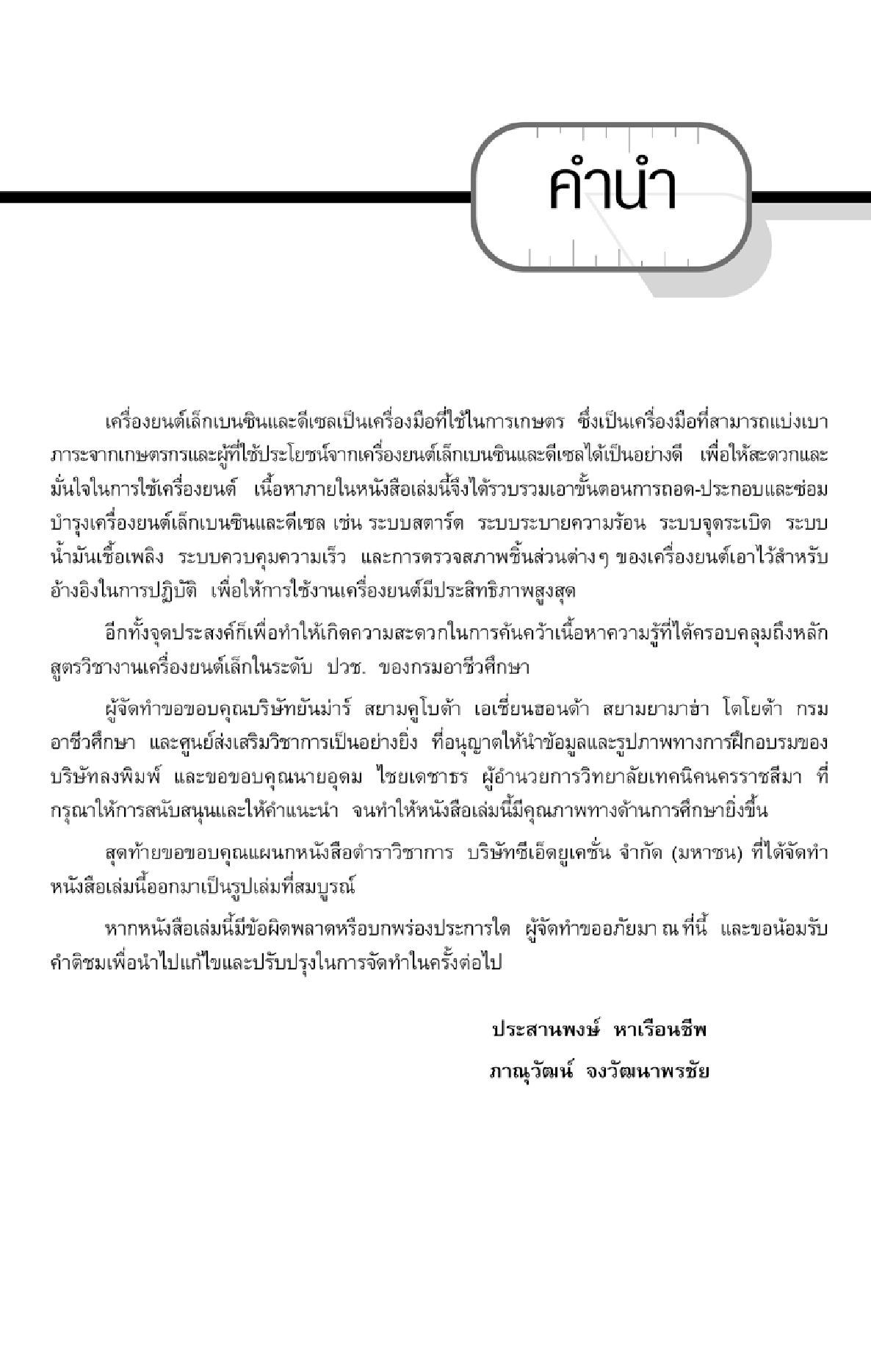 รวมใบงานที่มีเนื้อหาครอบคลุมขั้นตอนปฏิบัติงานซ่อมบำรุงรักษาและบริการเครื่องยนต์เล็กแก๊สโซลีน 2 จังหวะ...