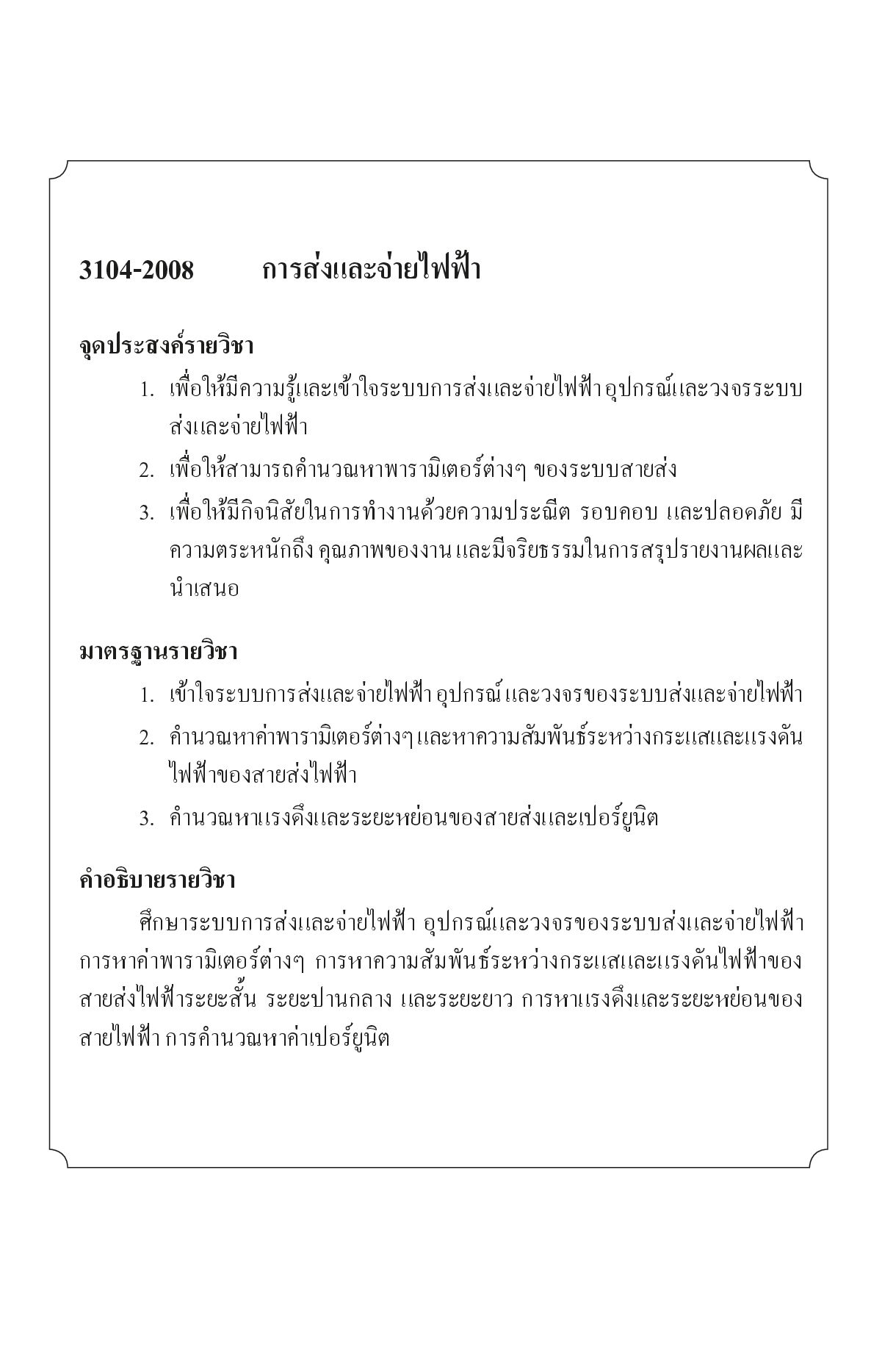 ตรงตามหลักสูตรของสำนักงานคณะกรรมการการอาชีวศึกษา ระดับปวส. และปริญญาตรี 3104-2008 การส่งและจ่ายไฟฟ้า