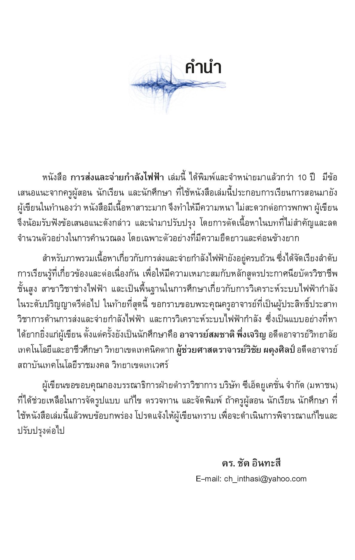ประกอบการเรียนการสอนของครูผู้สอน นักเรียน และนักศึกษา ทั้งในระดับ ปวส. และปริญญาตรี เหมาะสมกับหลักสูตรประกาศนียบัตรวิชาชีพชั้นสูง สาขาวิชาช่างไฟฟ้า และเป็นพื้นฐานในการศึกษาเกี่ยวกับการวิเคราะห์ระบบไฟฟ้ากำลังในระดับปริญญาตรีต่อไป นอกจากนี้ยังมีแบบฝึกหัดท้ายบท เพื่อให้ผู้เรียนได้ฝึกคิดคำนวณ วิเคราะห์ และสร้างความเข้าใจในเนื้อหาของการส่งและจ่ายกำลังไฟฟ้าให้มากยิ่งขึ้น