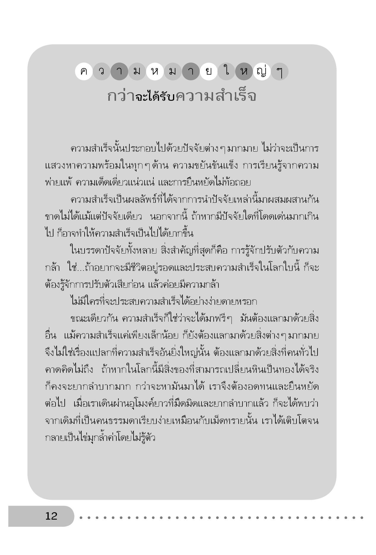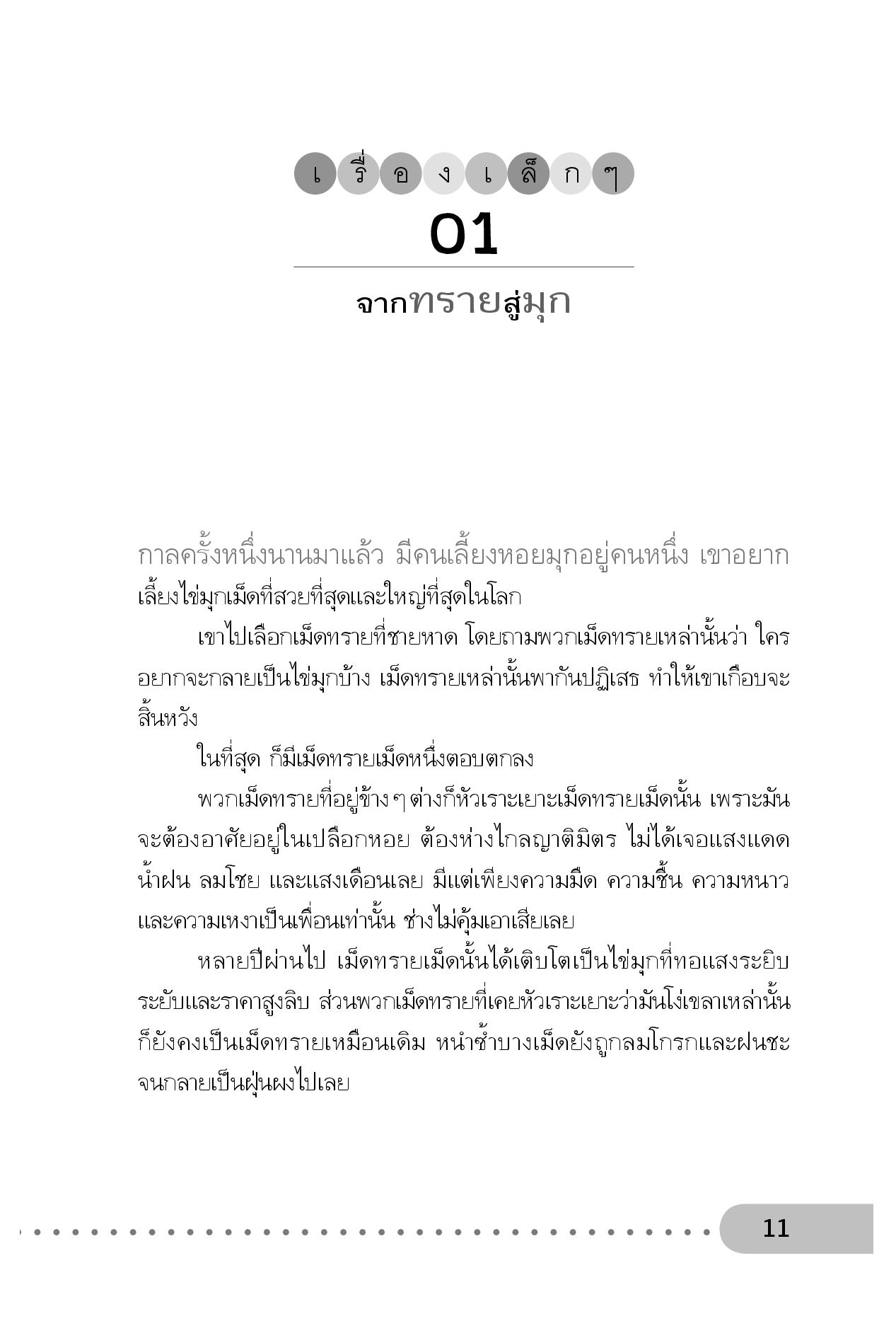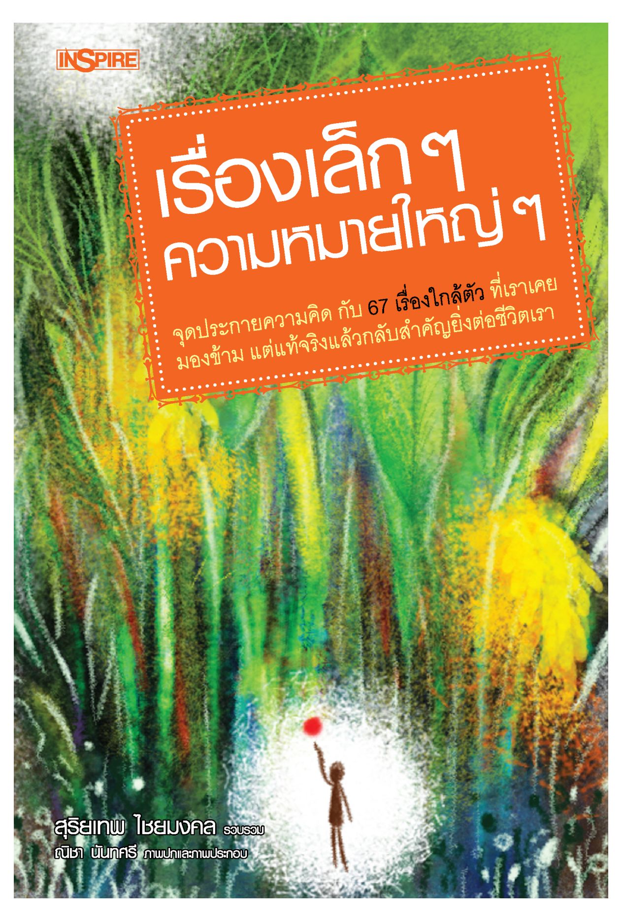มองให้ลึกนึกให้รอบด้าน แล้วเรื่องเล็กๆรอบตัวจะมองสิ่งที่มีคุณค่าให้แก่คุณ รวม 67 เรื่องเล่าเล็กๆ ที่มีความหมายยิ่งใหญ่ มีทั้งนิทาน เรื่องแต่ง และเรื่องจริงในรูปแบบที่สั้นกระชับ แต่เมื่ออ่านจบแล้วจะได้แง่คิด มุมมองใหม่ๆ และแรงบันดาลใจมากมาย ท้ายเรื่องมีการเชื่อมโยงข้อมูลอื่นๆ ที่เกี่ยวข้องในหลากหลายด้าน มีการชี้ชวนให้คิด และมีการตีความที่ช่วยขยายโลกทัศน์ของผู้อ่านให้กว้างไกลยิ่งขึ้น เหมาะสำหรับมอบเป็นของขวัญให้เพื่อนๆและบุคคลอันเป็นที่รัก