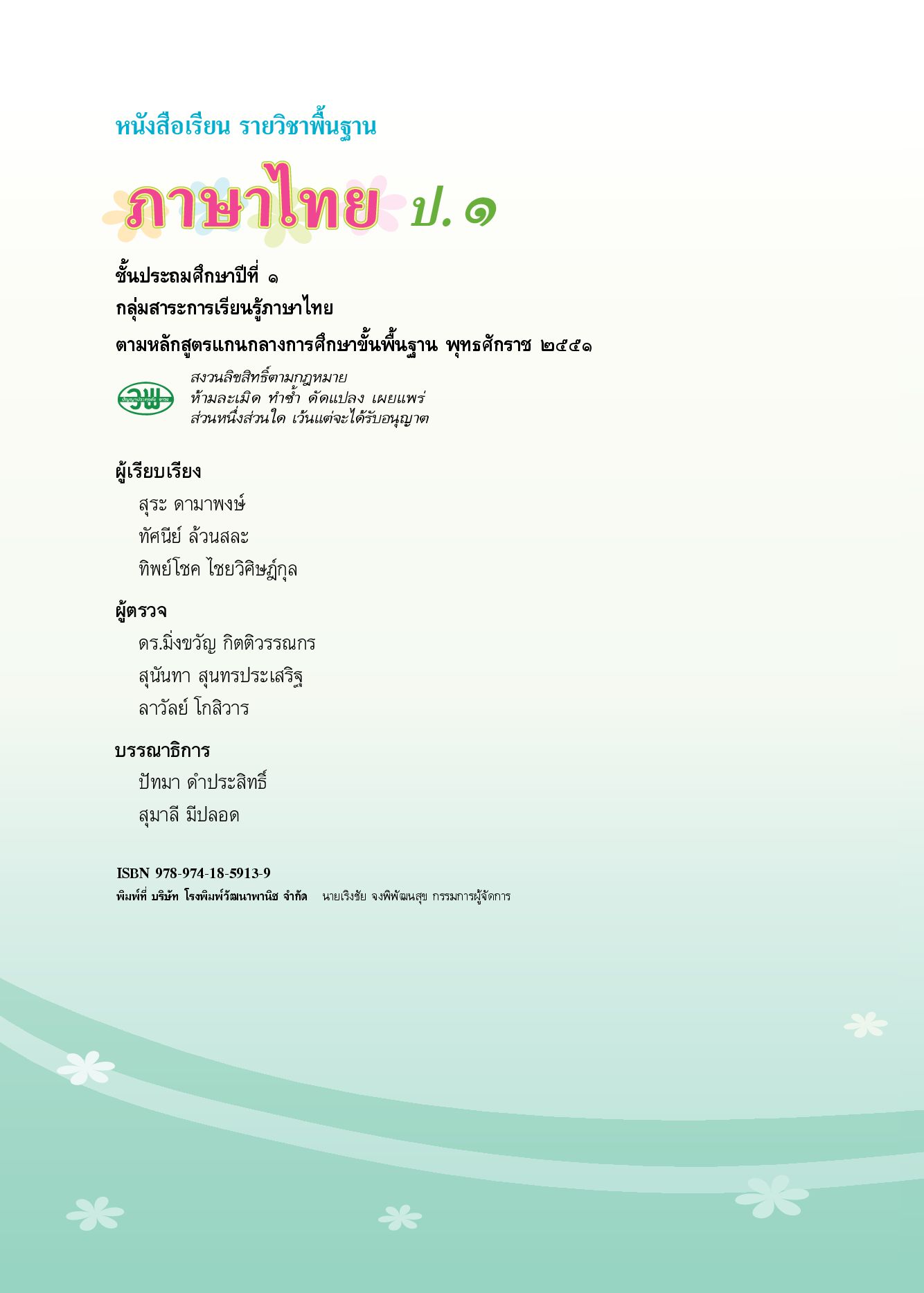 หนังสือเรียนรายวิชาพื้นฐานภาษาไทย ชั้นประถมศึกษาปีที่ 1