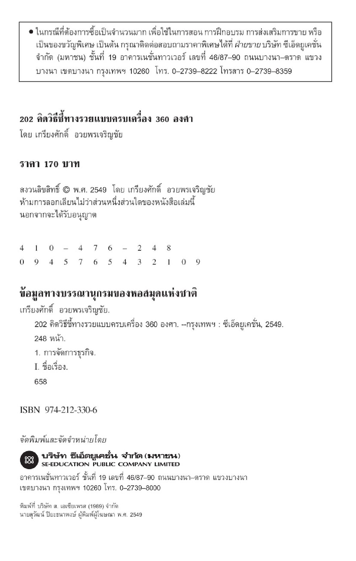 202 คิดวิธีชี้ทางรวยแบบครบเครื่อง 360 องศา