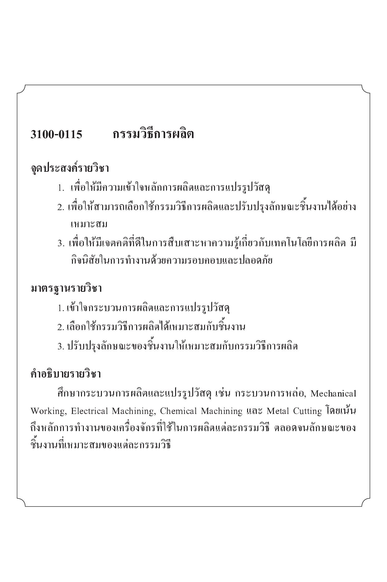 มีเนื้อหาของกรรมวิธีการผลิตชิ้นส่วนเครื่องกลและเครื่องมือด้วยเครื่องจักรสมัยใหม่ ควบคุมการผลิตด้วยคอมพิวเตอร์