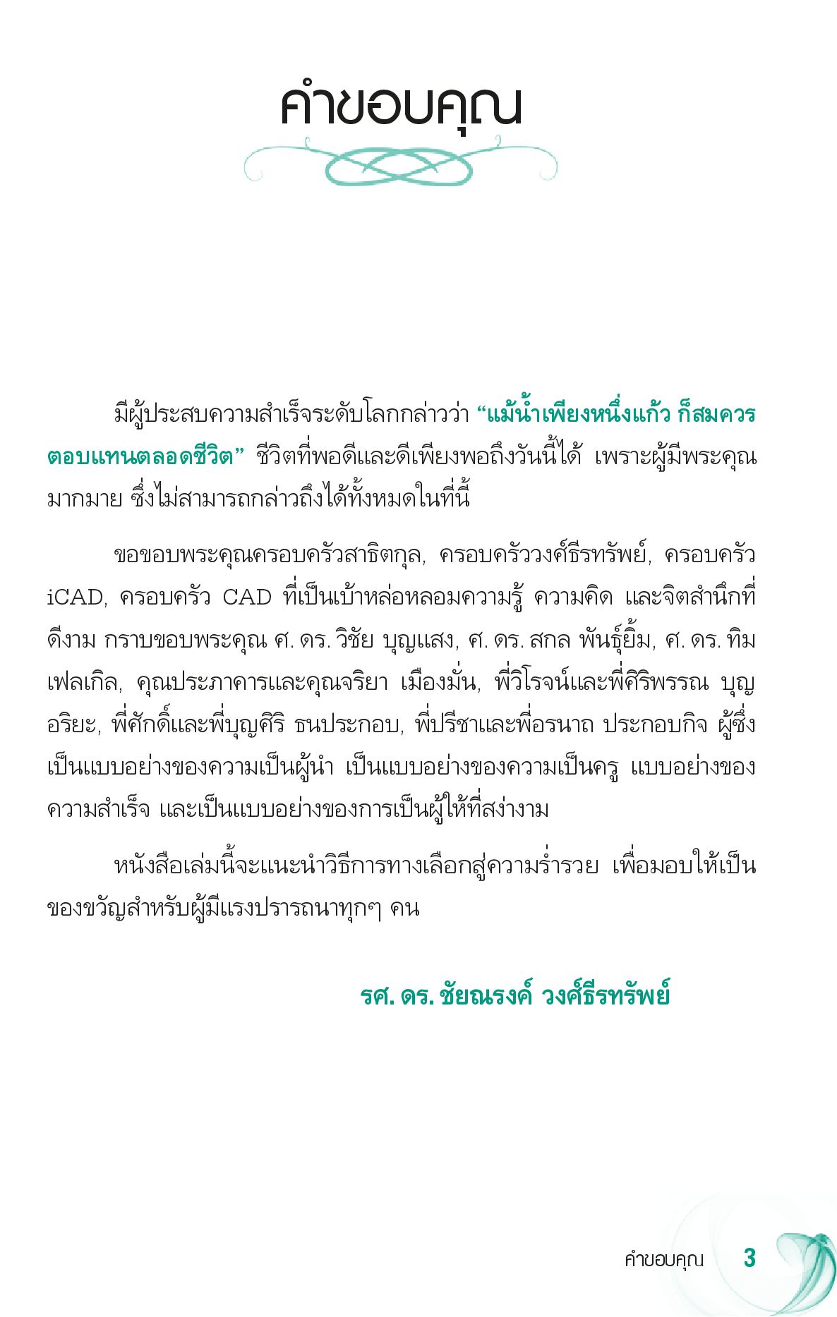 เขียนขึ้นเพื่อกระตุ้นให้ผู้อ่านเห็นความจริงประการหนึ่ง โดยที่ไม่ต้องมานั่งหลอกตัวเอง นั่นก็คือ "งิน" ซึ่งเป็นสิ่งสำคัญที่สุดอย่างหนึ่งในการดำรงชีวิตของเรา แน่นอนเราอาจหาซื้ออะไรได้ด้วยเงินไม่ได้ทั้งหมด เพราะเงินไม่ใช่แก้วสารพัดนึก แต่หากไม่มีเงิน ก็รับรองได้ว่าคุณก็จะนึกอะไรไม่ออกสารพัด เนื้อหาภายในเล่มแบ่งออกเป็น 2 ภาคคือ ภาคที่ 1 เป็นเนื้อหาเกี่ยวกับการกระตุ้นแรงปรารถนา และการสร้างคุณค่าจากความร่ำรวย ภาคที่ 2 เป็นเนื้อหาเกี่ยวกับ 12 ทางเลือกสู่ความมั่งคั่งและร่ำรวย ซึ่งใครก็ตามที่มีแรงปรารถนาและปฏิบัติตาม 12 ทางเลือกนี้ ก็จะสามารถเปลี่ยนโลกของผู้ที่เข้าใจว่าความร่ำรวยเป็นเรื่องไกลตัวหรือเป็นเรื่องยากให้กลายเป็นเรื่องใกล้ตัวได้ และเป็นเรื่องที่ใครก็ตามสามารถทำได้ เพราะแฝงอยู่กับการใช้ชีวิตประจำวันของเรานั่นเอง