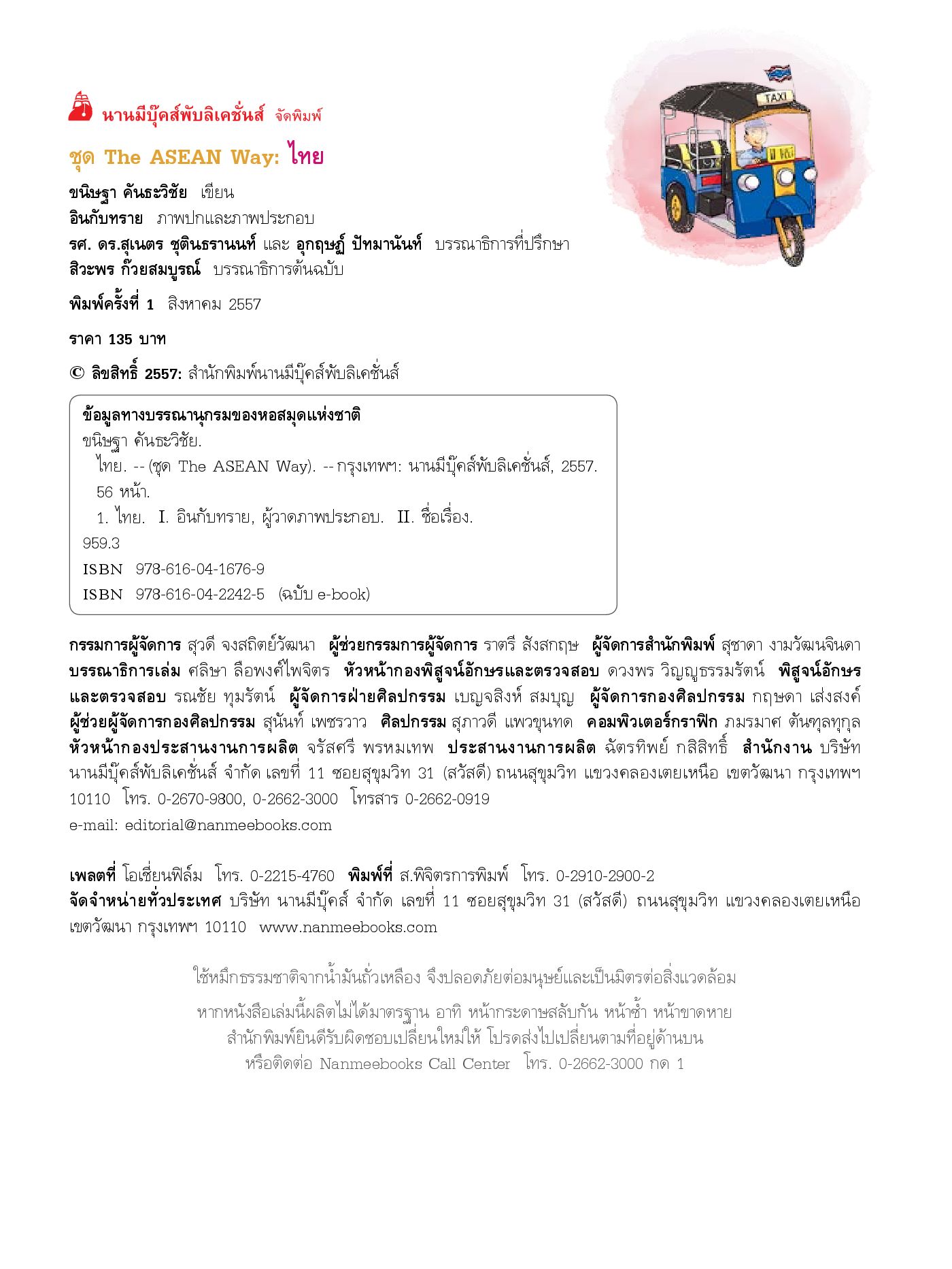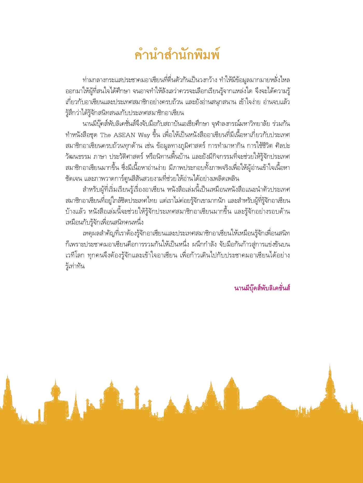 นานมีบุ๊คส์พับลิเคชั่นส์ร่วมกับสถาบันเอเชียศึกษา จุฬาลงกรณ์มหาวิทยาลัยพาทุกคนไปพบกับทุกเรื่องราวของประเทศไทย ทั้งข้อมูลทั่วไป วิถีชีวิต วัฒนธรรมประวัติศาสตร์ นิทานพื้นบ้าน ลักษณะเด่นของภาษาไทยและตัวอย่างสำนวนไทยและกิจกรรมแสนสนุกที่จะทำให้รู้จักและเข้าใจประเทศไทยได้ดียิ่งขึ้น เมื่อรู้จักรากฐานของตนเองดีแล้วก็จะก้าวเดินไปกับประชาคมอาเซียนได้อย่างรู้เท่าทัน