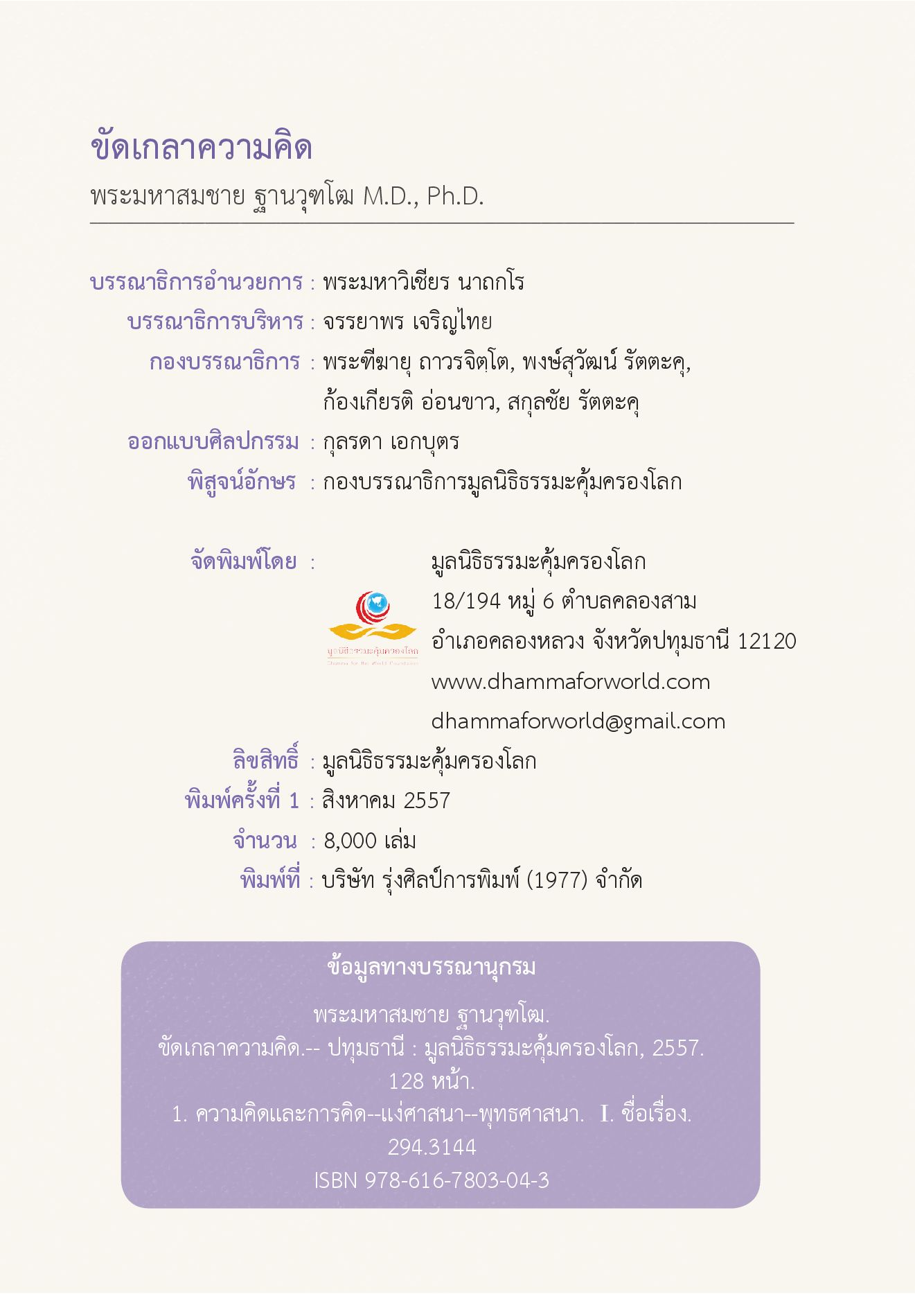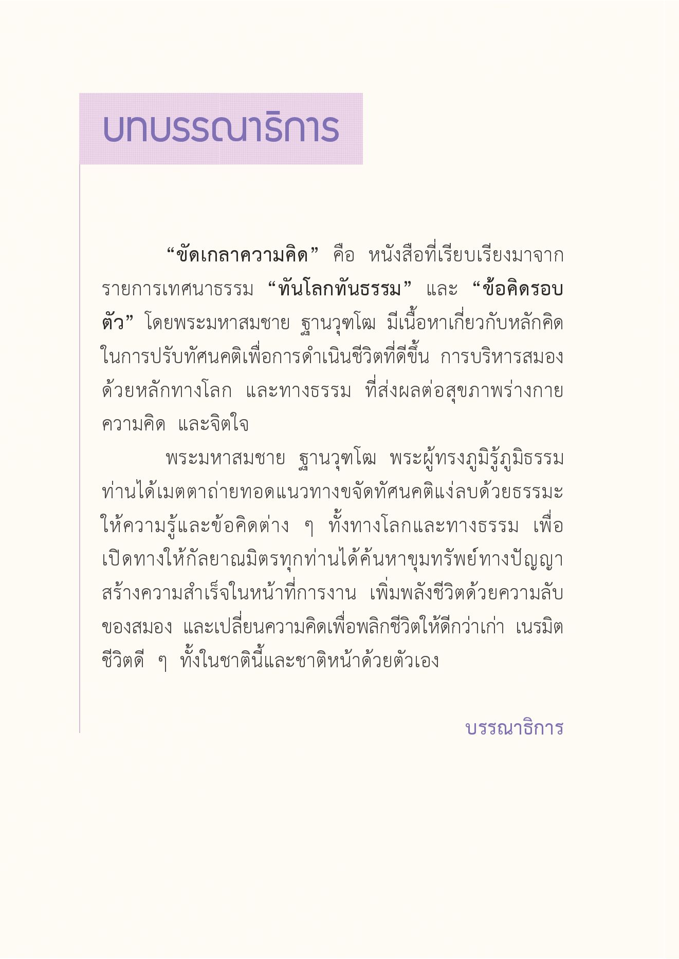 “ขัดเกลาความคิด” คือ หนังสือที่เรียบเรียงมาจาก รายการเทศนาธรรม “ทันโลกทันธรรม” และ “ข้อคิดรอบ ตัว” โดยพระมหาสมชาย ฐานวุฑโฒ มีเนื้อหาเกี่ยวกับหลักคิด ในการปรับทัศนคติเพื่อการดำเนินชีวิตที่ดีขึ้น การบริหารสมอง ด้วยหลักทางโลก และทางธรรม ที่ส่งผลต่อสุขภาพร่างกาย ความคิด และจิตใจ