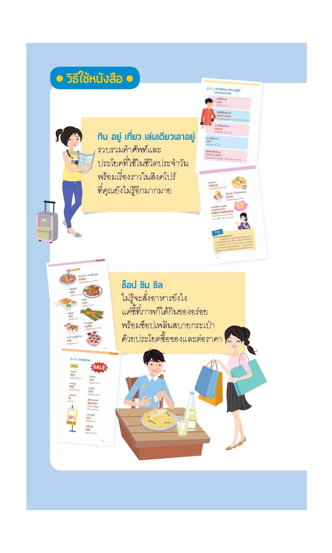 นอกจากนี้ ยังมีเกร็ดความรู้มากมายที่จะทำให้ทราบถึงวัฒนธรรมและการใช้ชีวิต เช่น การเดินทาง โรงแรม อาหารในสิงคโปร์ ฯลฯ ตลอดจนที่มาของสัญลักษณ์ประเทศอย่างเมอร์ไลออน รับประกันได้ว่าหากมีหนังสือเล่มนี้ติดตัวไว้ ไม่ว่าจะอยู่ในสถานการณ์ใด ก็ช่วยให้สื่อสารกับเจ้าของภาษาได้อย่างคล่องแคล่ว